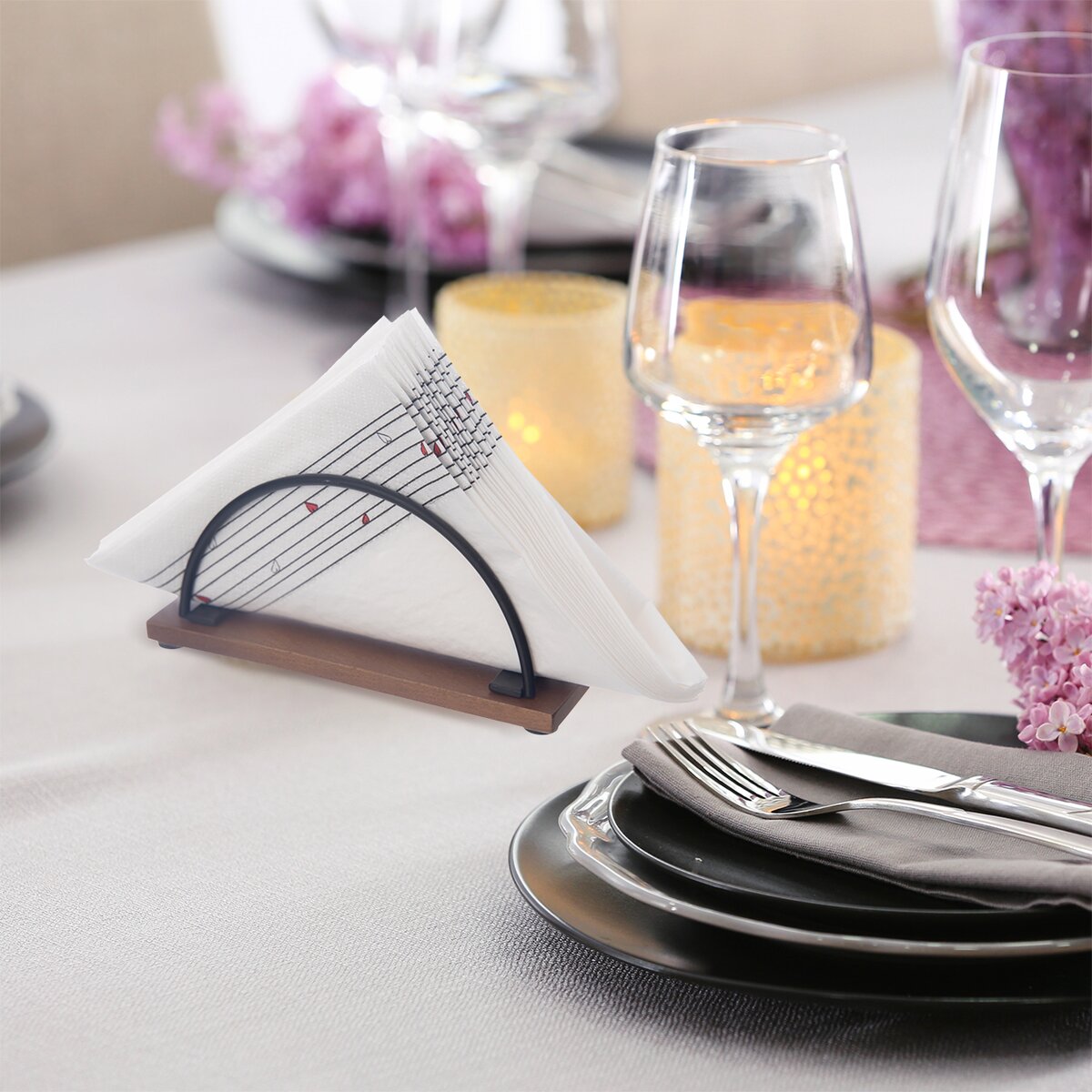 Kód produktu 154319Drátěný stojan na ubrousky z kovu a akáciového dřeva umožní jednoduché uložení ubrousků při každodenním i svátečním stolování.