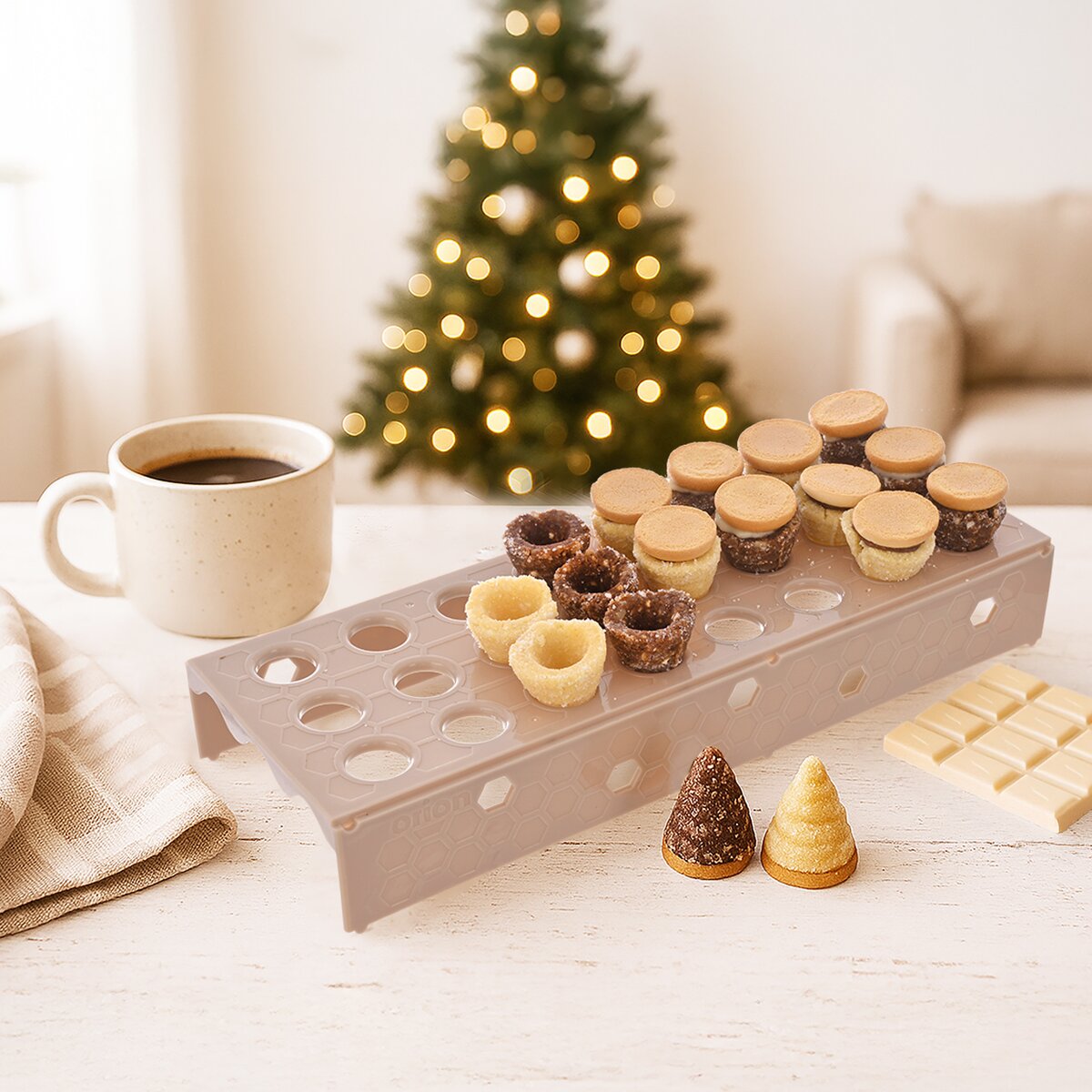 Stojan má 24 otvorů a je stohovatelný – lze jej skládat do více pater nad sebe, což šetří místo při přípravě i skladování. Stojan je vyroben z kvalitního plastu PP vhodný do myčky nádobí a mrazáku.