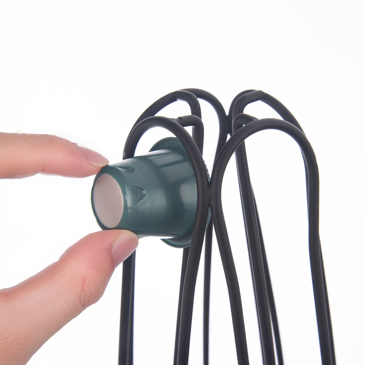 Více informacíŽelezný stojan s černým nástřikem je určen k praktickému uložení klasických kávových kapslí (pr. víčka 35 mm, pr. dna 23 mm, výška 27 mm), které lze libovolně v horní části nasunout do 4 sekcí, tedy do každého oddílu po 10 kapslích.