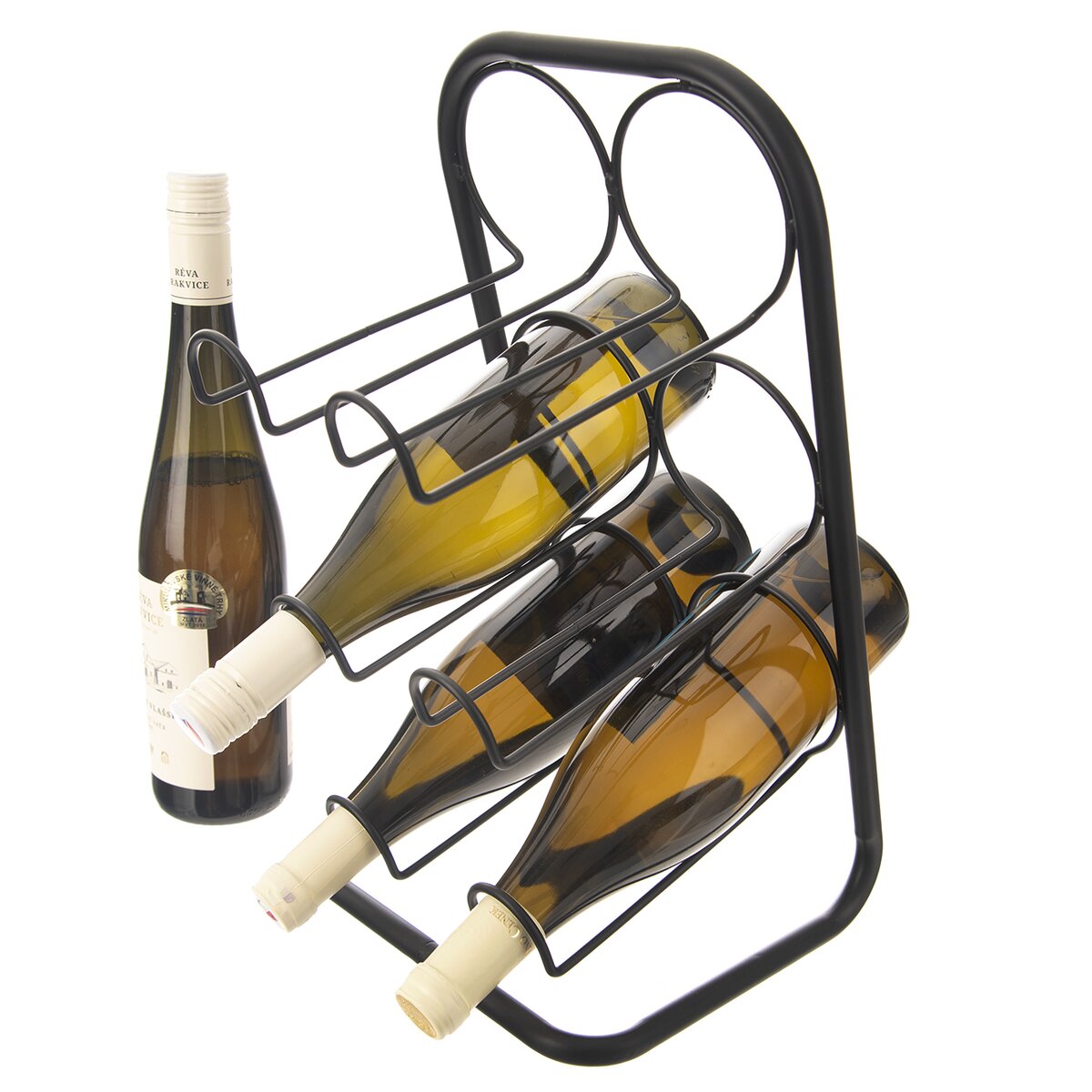 Kód produktu 540602Černý kovový stojan RADKA na víno, sloužící k uložení až 6 lahví o objemu 0,75 l v domácnosti.