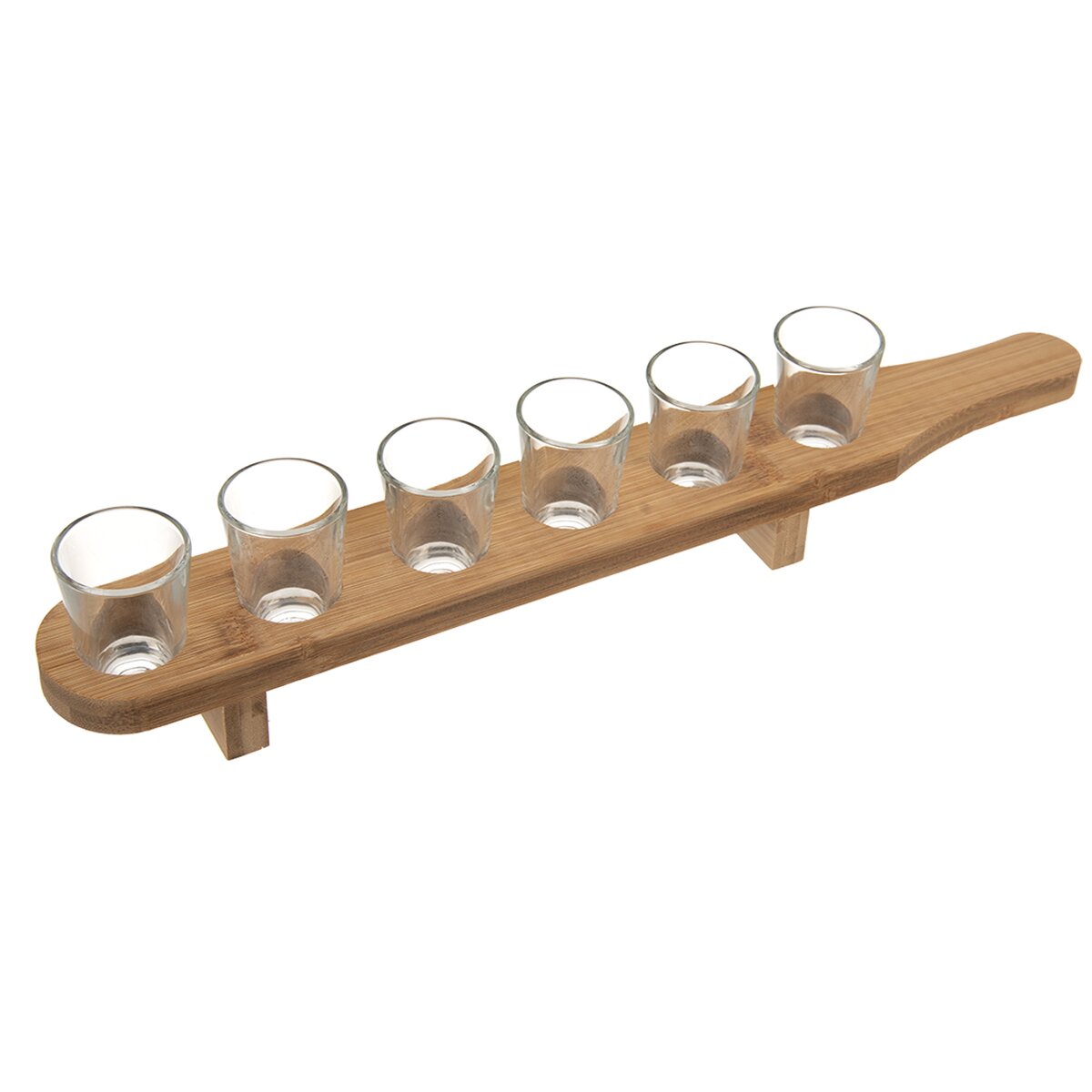 Skleněné panáky naplňte oblíbenou pálenkou a servírujte přípitek. Držadlo usnadní přenášení, celý stojan můžete také položit na stůl, díky dvěma nožkách bude stabilní.