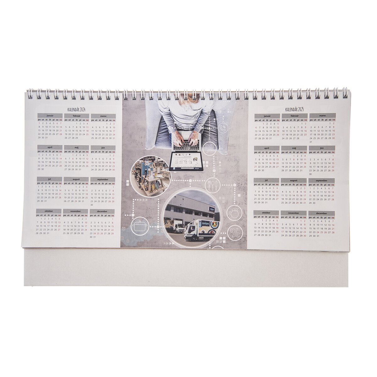 Kód produktu 834655Týdenní stolní kalendář Orion na rok 2024 je určen k postavení na pracovní či kuchyňský stůl, parapet i polici. 60 stran včetně poznámek a souhrnného kalendáře na rok 2024 a 2025.