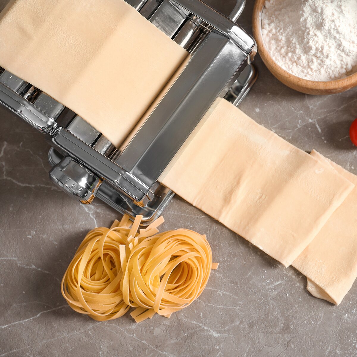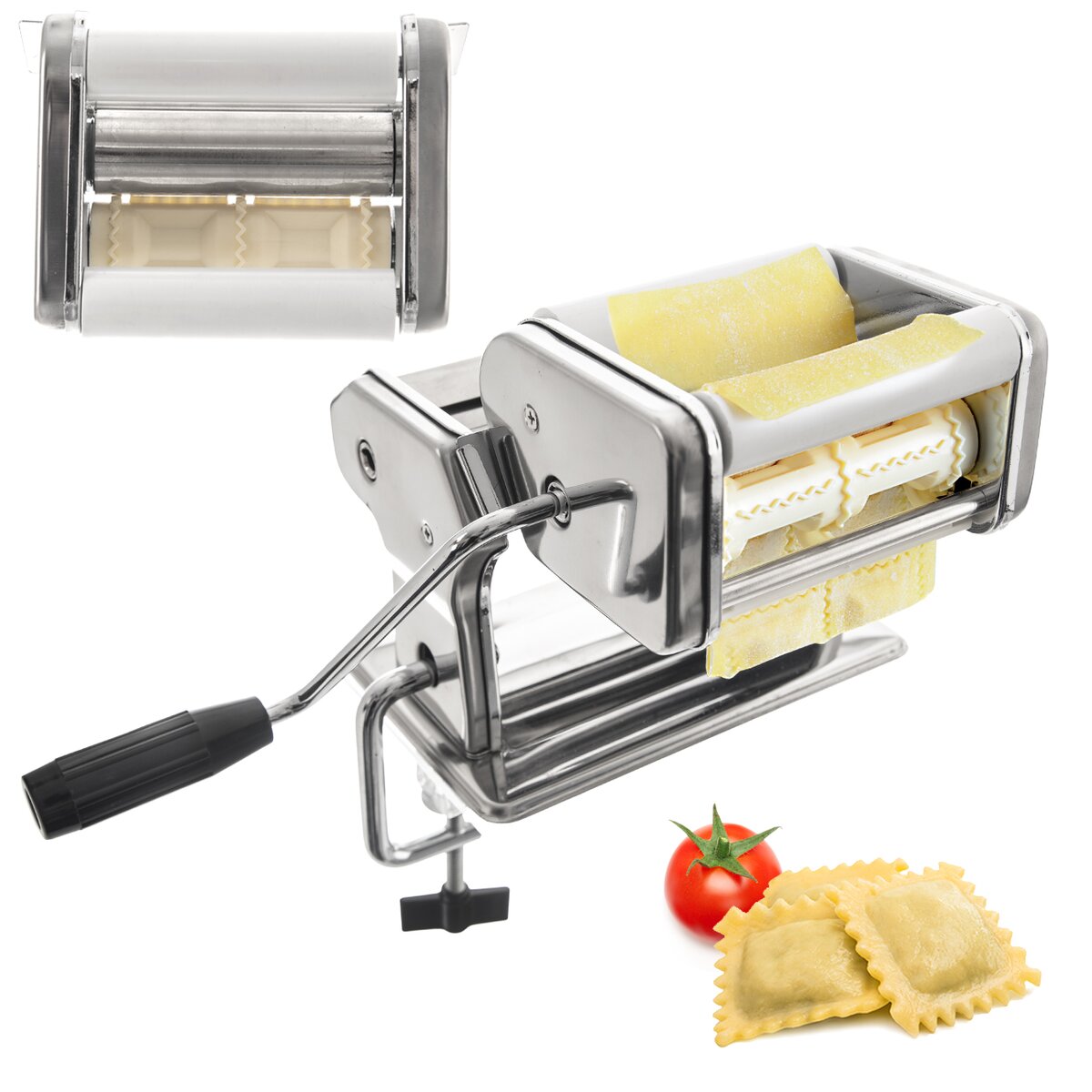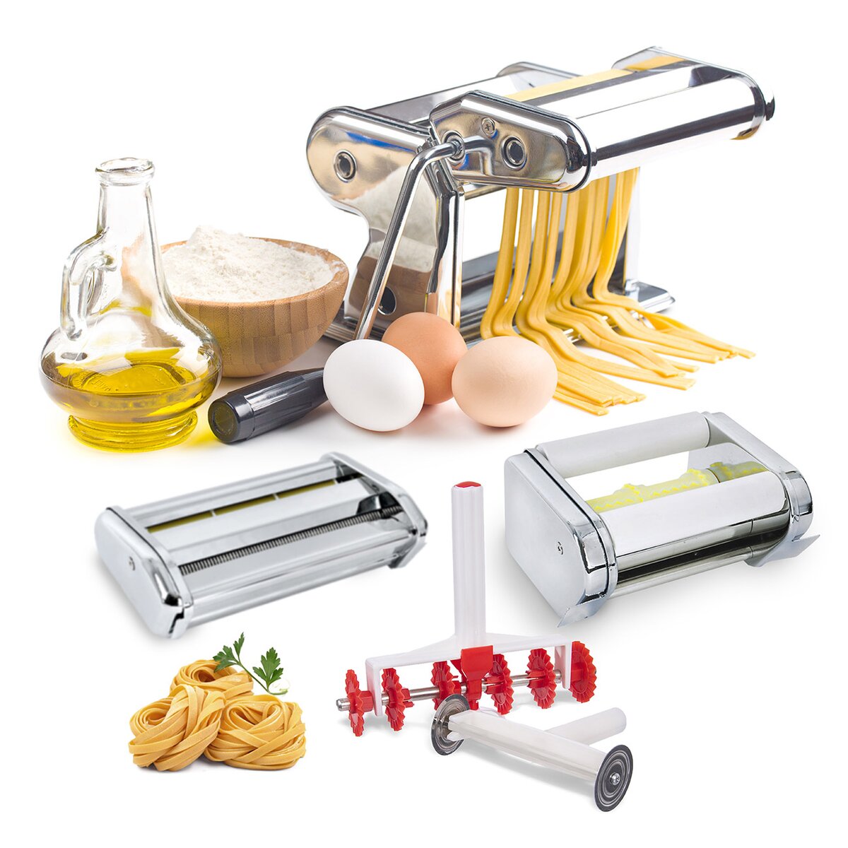 Kód produktu 131512Nerezový strojek FRANCESCO se 3 nástavci a 2 šikovnými rádélky. Je ideální na výrobu domácích těstovin, vlasových, polévkových nudlí, špaget, širokých nudlí, plněných raviol i lasagní.