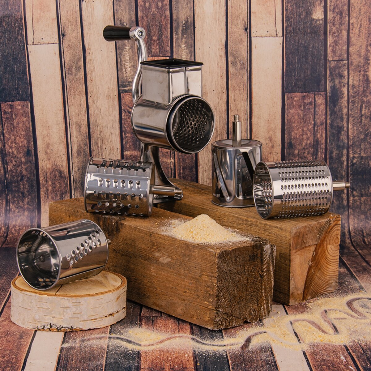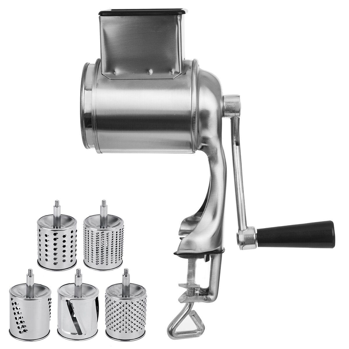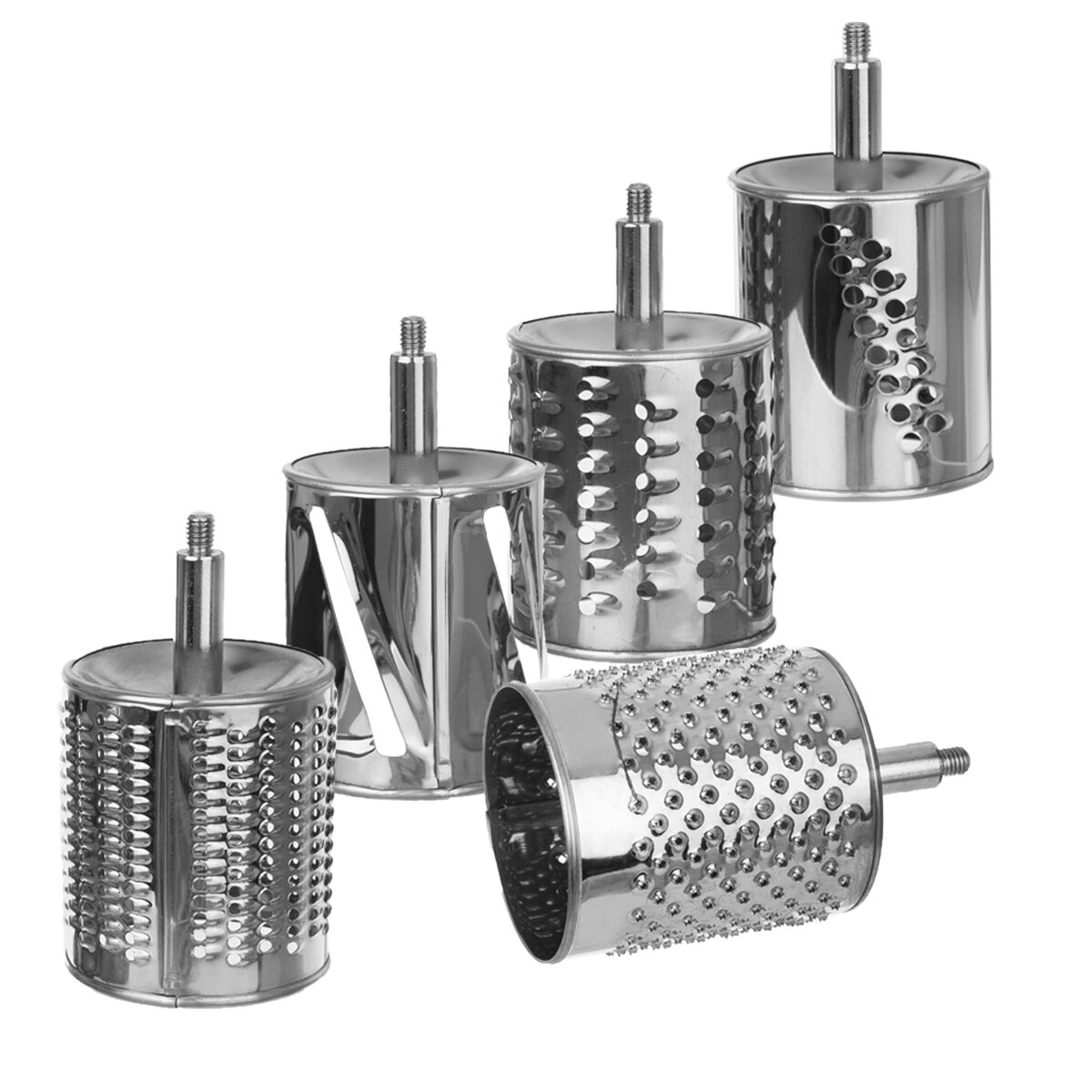 Kód produktu 130303Nerezový strojek s 5 bubnovými nástavci pro přípravu domácí strouhanky z tvrdého pečiva, ale i ke strouhání ořechů, tvrdých sýrů nebo okurků.