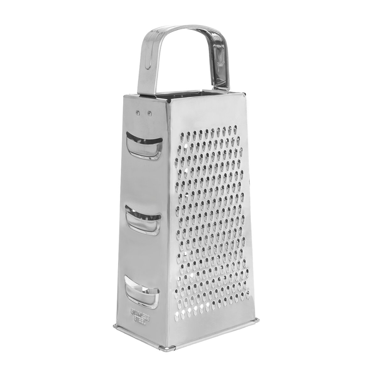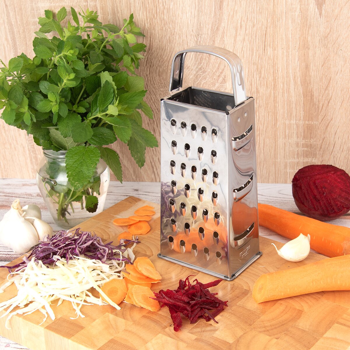 Kód produktu 120772Klasické nerezové čtyřhranné struhadlo s rukojetí s různými typy ploch, určené ke strouhání ovoce, zeleniny i sýrů. Toto struhadlo se dá využít na většinu potravin, se kterými vaříte.