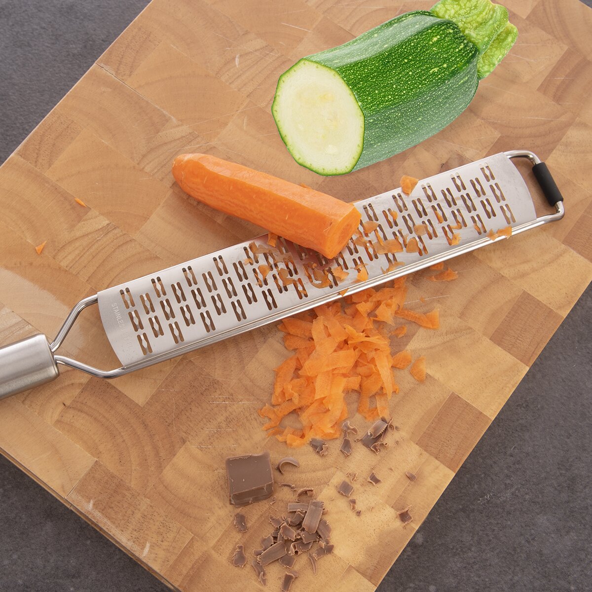 Kód produktu 144810Jednoruční nerezové struhadlo délky 37,5 cm je vhodné ke strouhání mrkve, kedlubny, cukety, brambor, tvrdého sýra i čokolády. Doplněno krytem pro bezpečné uložení do zásuvky.