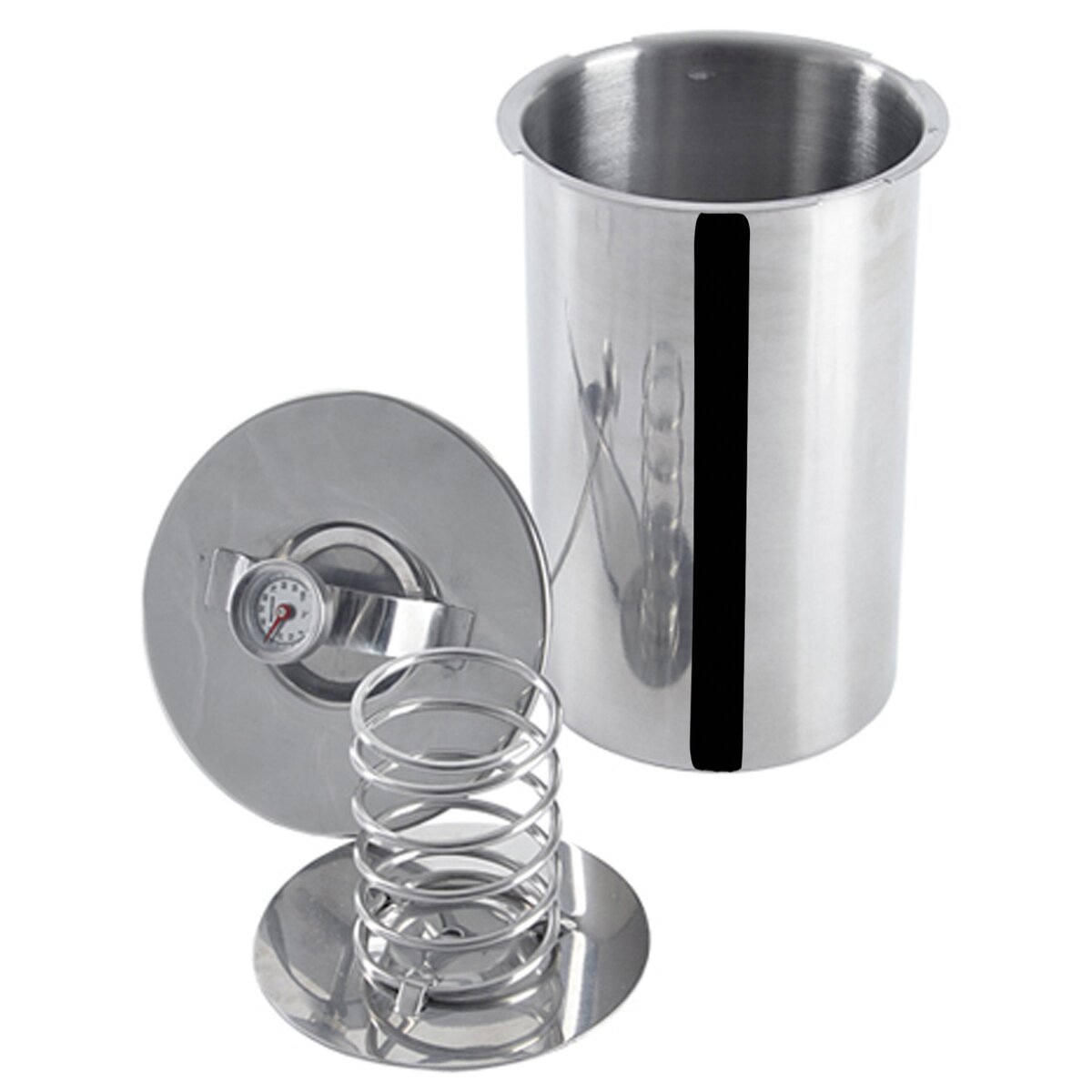 Kód produktu 131514Nerezový hrnec na výrobu domácí šunky nebo paštiky s teploměrem a víčkem.