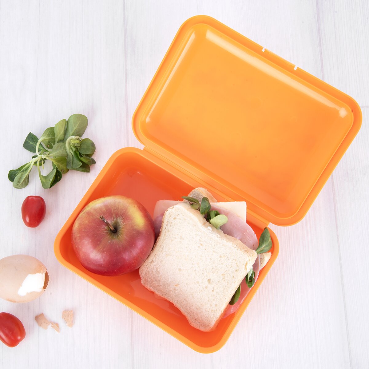 Dětem do školy, školky, na výlet nebo do družiny. Tento oranžový svačinový box se hodí na uložení chleba se sýrem, housky se šunkou i na domácí buchtu nebo muffiny.