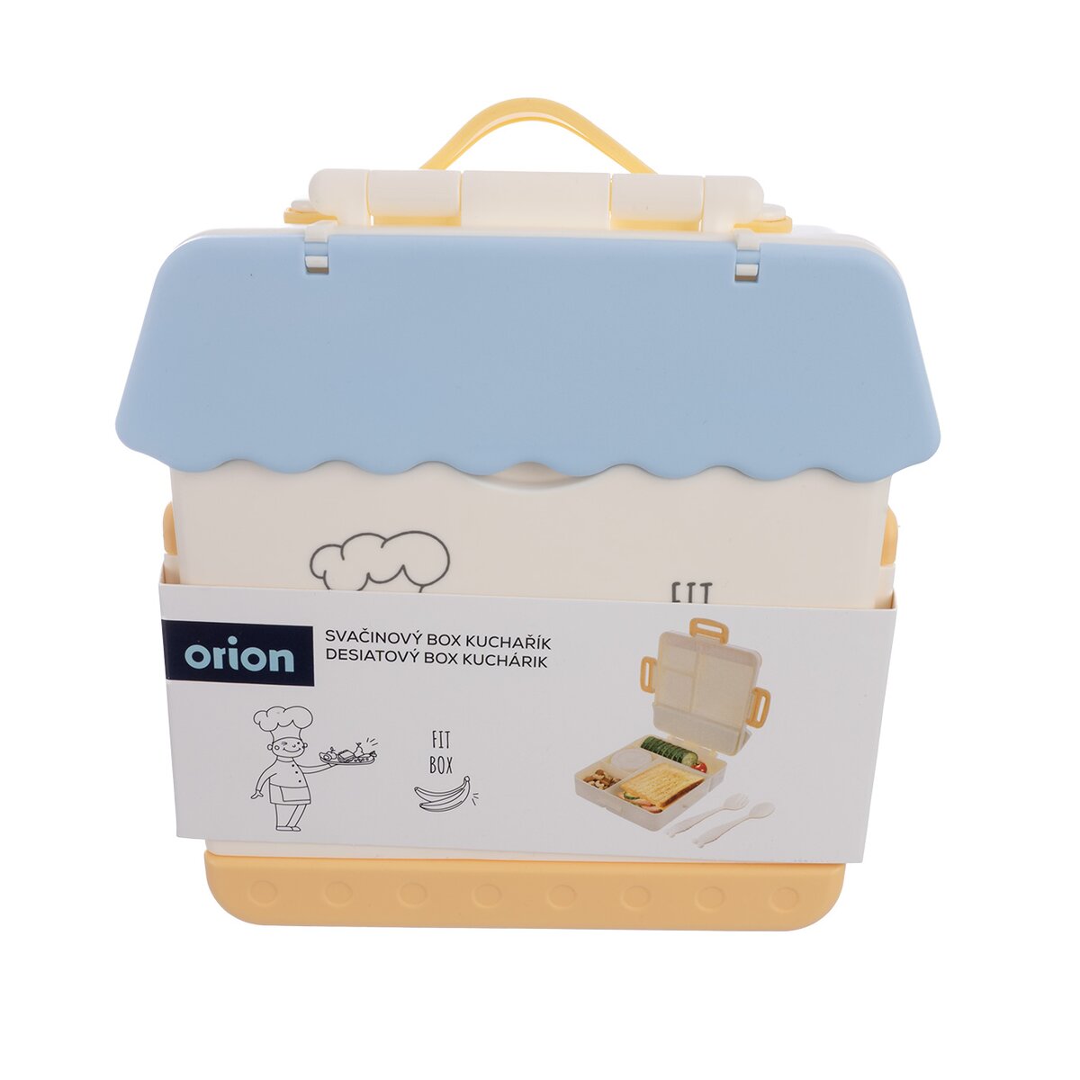 Praktické ucho zajišťuje snadné přenášení. Je vyroben z PP plastu, vnitřní části a příbory z PE plastu a těsnění ze silikonu. Svačinový box je navržen designéry značky Orion a spojuje funkčnost, praktičnost a hravý dětský design.