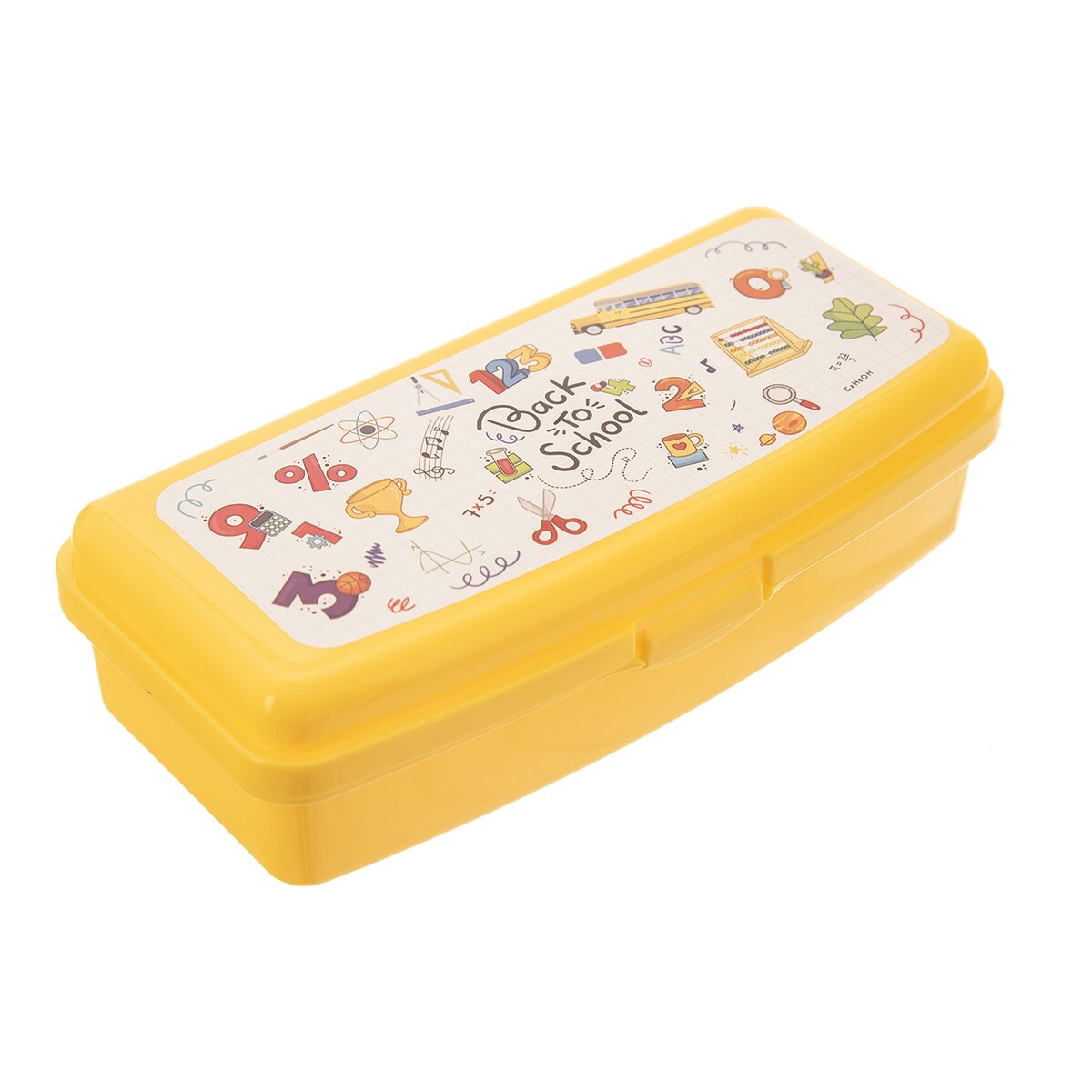 Kód produktu 154044Plastový delší box velikosti 20,5x10x5,5 cm, vhodný k uložení svačiny do školy, na výlet i dovolenou. Víčko s dekorem školních pomůcek a nápisem Back to school, které uzavře box na klip.