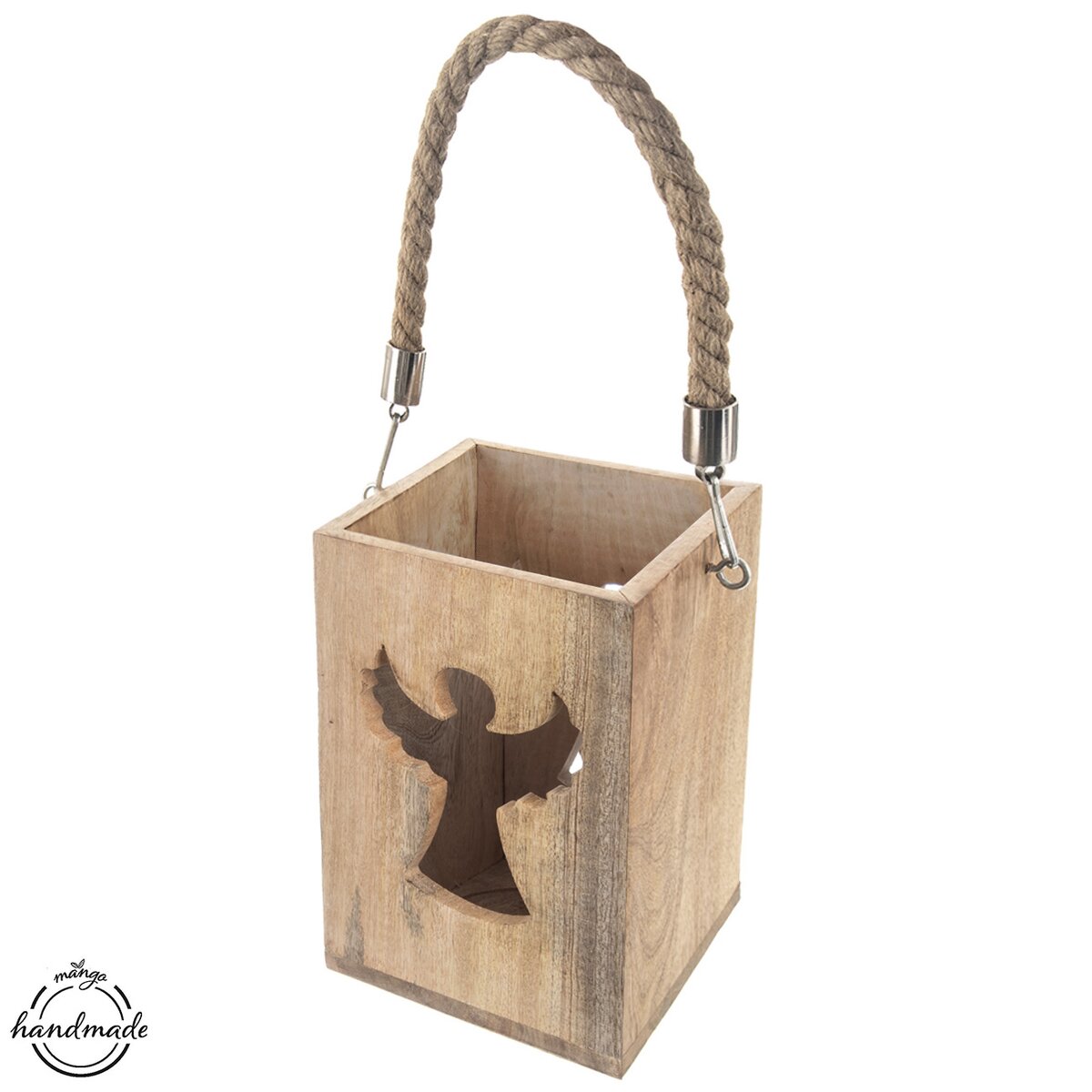 Více informacíKrásný svícen z mangového dřeva, který je doplněn silným jutovým provazem vhodným k zavěšení. Dovnitř lze umístit svíčku nebo led osvětlení, světlo z něho proniká vyfrézovaným otvorem ve tvaru anděla. Tato okouzlující lucerna bude krásným prvkem v interiéru, ale udělá velkou parádu i na terase, kde umocní odpočinek se sklenkou vína nebo šálkem kávy v podvečerních hodinách.
