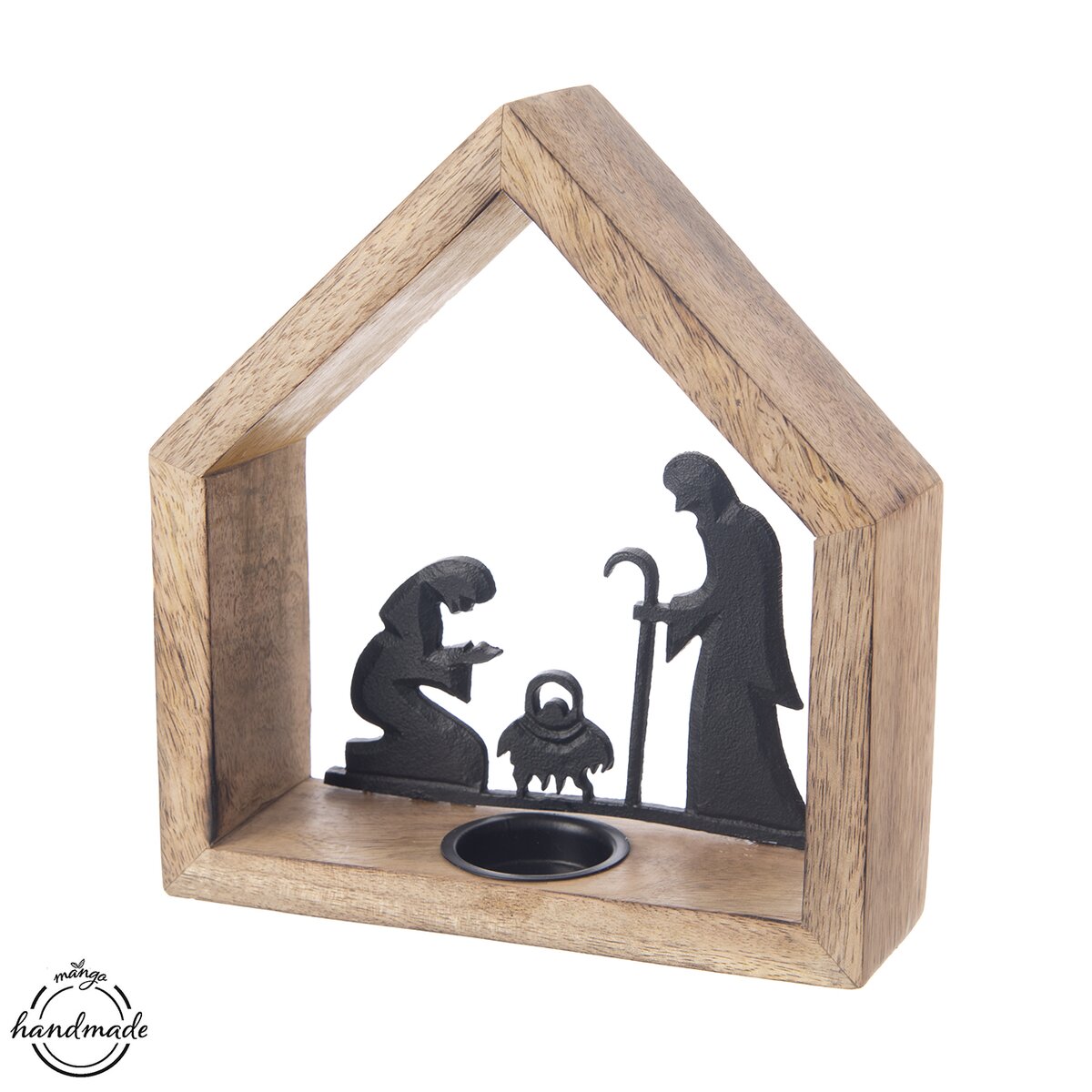Kód produktu 351840Svícen ve tvaru stříšky má krásnou texturou mangového dřeva, je doplněn kovovými motivy narození Ježíška v Betlémě. Je vhodný jako dárek nebo z něho bude stylový kousek do interiéru.
