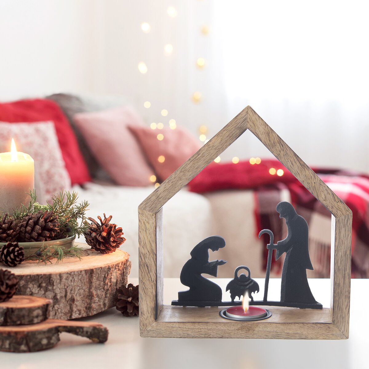 Více informacíKrásný svícen z mangového dřeva je doplněn kovovou siluetou Marie, Josefa a právě narozeného Ježíška, díky nimž bude krásným prvkem v interiéru nejen v období Adventu.