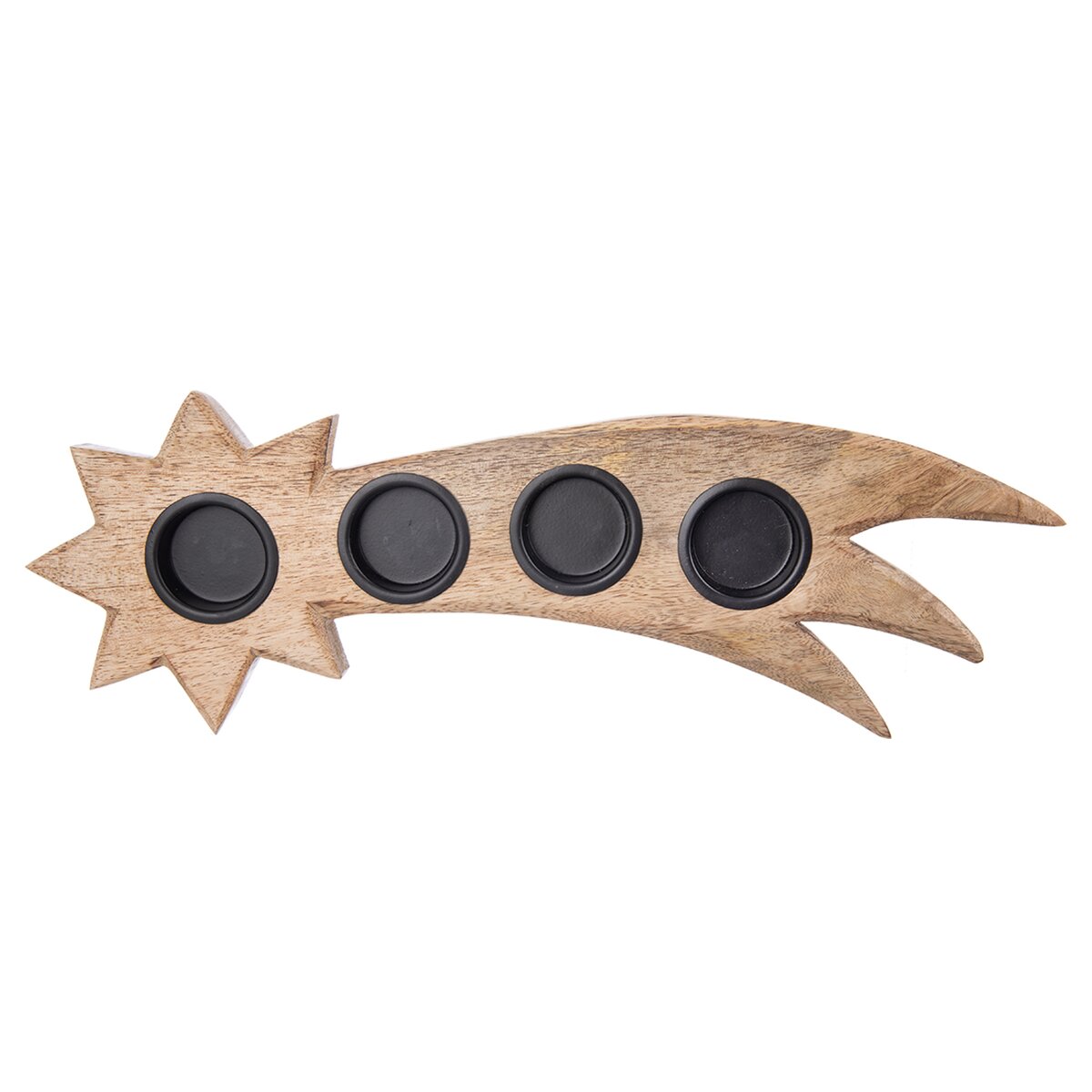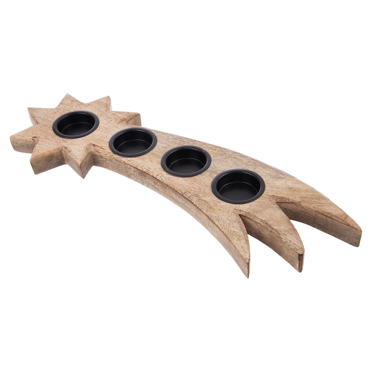 Kód produktu 351864Svícen ve tvaru letící komety je vyroben z mangového dřeva a doplněn 4 kovovými prohlubněmi na umístění adventních, čajových svíček. Bude krásnou dekorací nebo milým dárkem.