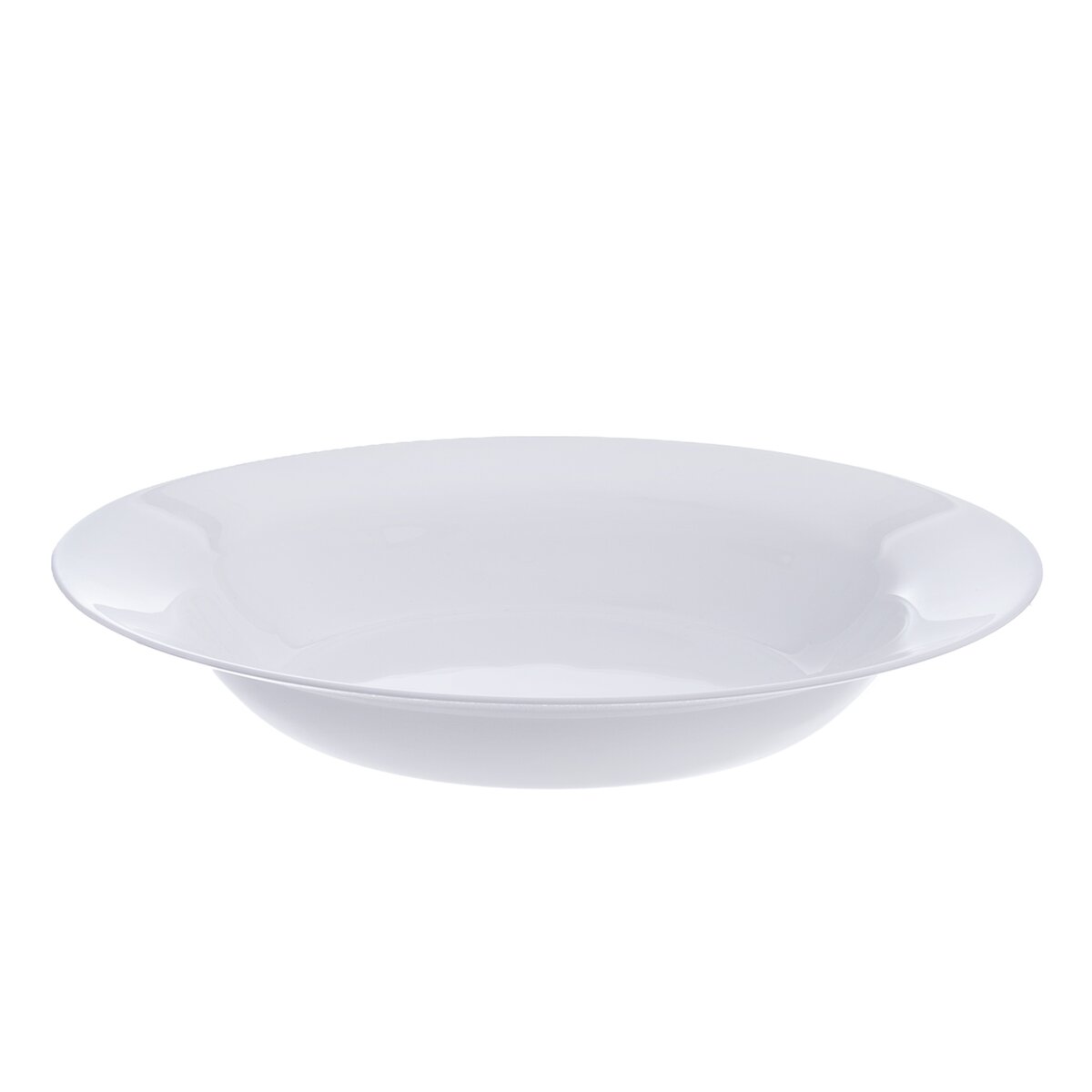 Kód produktu 128420Bílý hluboký talíř na těstoviny o průměru 29 cm z opálového skla, vhodný k ohřevu v mikrovlnné troubě a umývání v myčce.