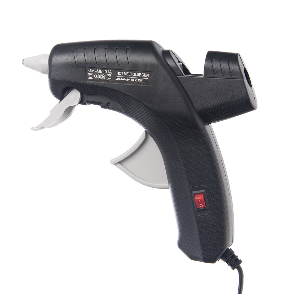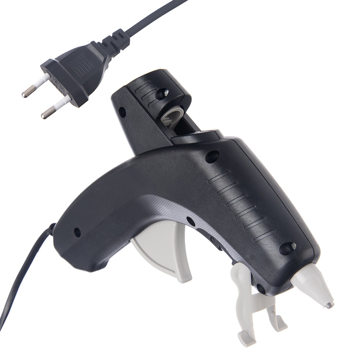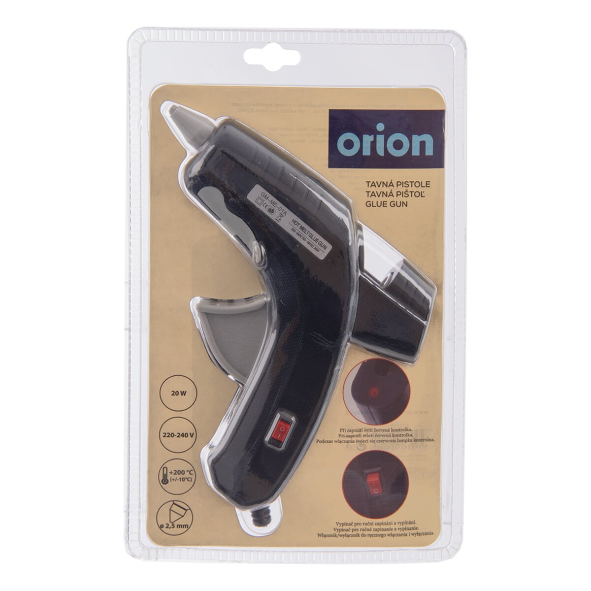 Lze ji postavit na nehořlavou podložku díky výklopnému stojánku v přední části a pokud s ní chvíli nepracujete, lze ji tlačítkem (ABS plast) vypnout a pak se k práci vrátit, aniž byste vytahovali šňůru ze zásuvky. Samozřejmostí je dbát na bezpečnost, špička pistole je žhavá. Příkon 20 W, napětí 220-240 V / 50-60 HZ. Lepicí množství cca 15-24 gramů/min. Používají se tavné tyčinky o pr. 11 mm. Z tavné pistole z polyamidu 6 vychází roztavené lepidlo o pr. 2,5 mm.
