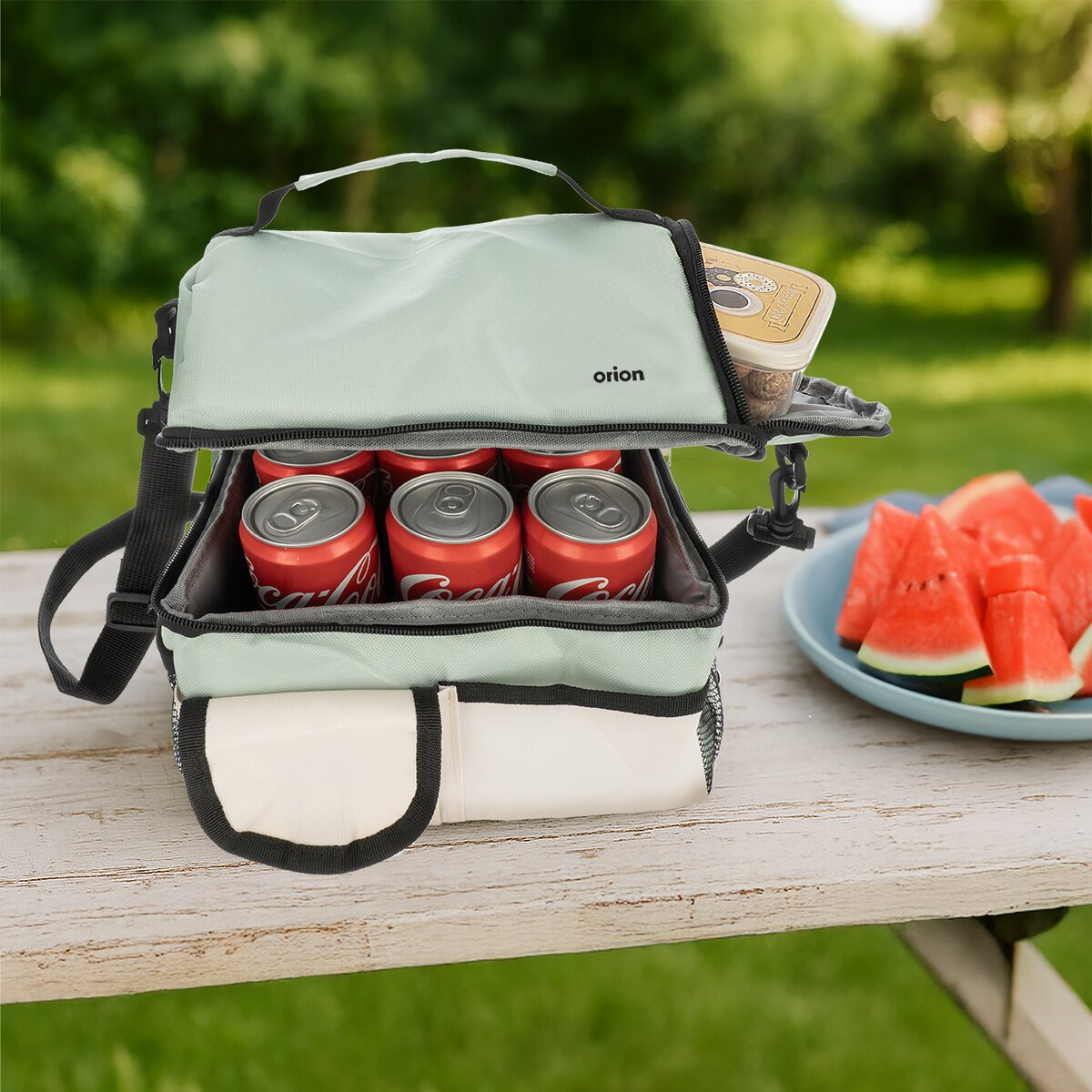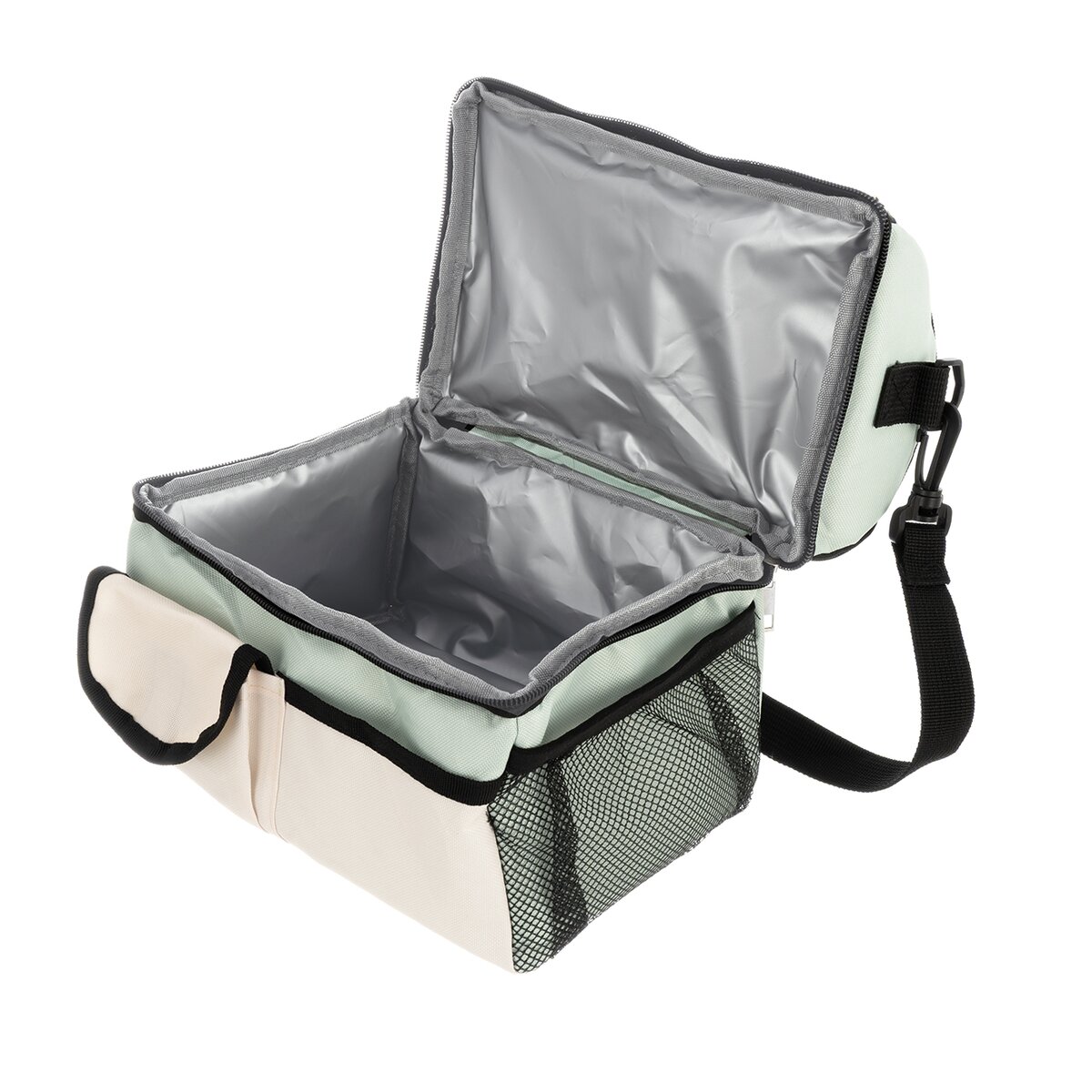 Kód produktu 731437Zeleno-krémová termobrašna o objemu cca 9 litrů udrží vaše jídlo a nápoje déle v požadované teplotě díky vnitřní termoizolační vložce. Má hlavní prostor na zip a horní část s odepínáním na boku k uložení drobnějších dóz, plechovek apod.