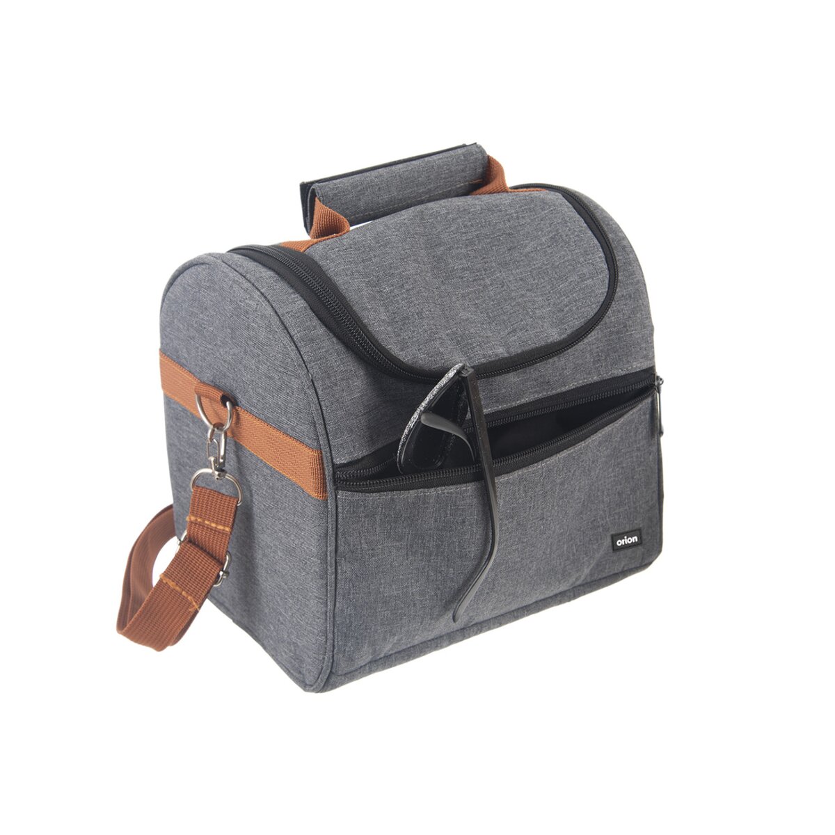 Kód produktu 731423Šedá termobrašna o objemu 5,5 litrů, s přední kapsou, uchem, popruhem a zavíráním na zip, udrží vaše jídlo a nápoje déle v požadované teplotě díky vnitřní termoizolační vložce.
