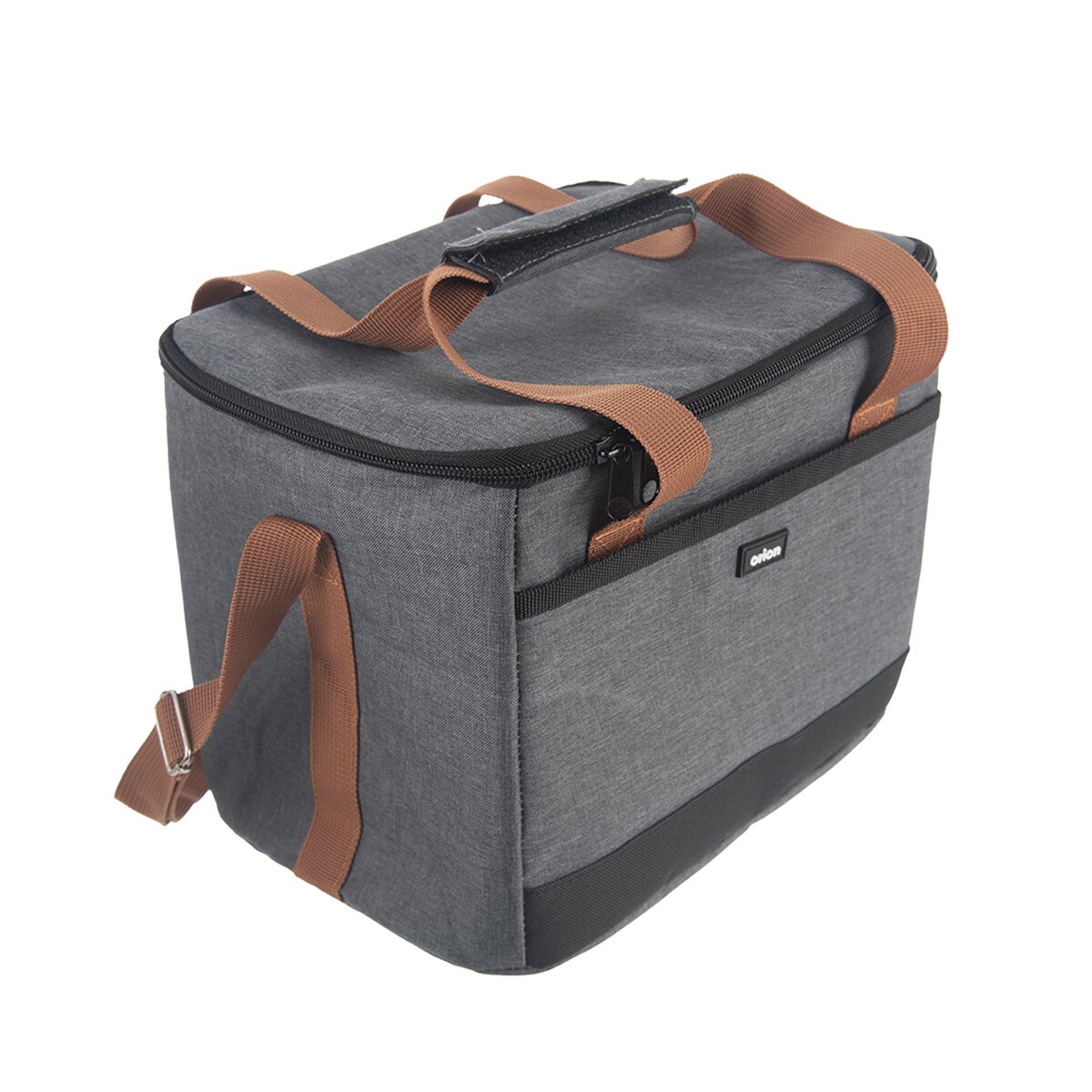 Pohodlně se dovnitř vejdou menší láhve a několik plastových dóz, které vyskládáte na sebe. Brašnu stačí uzavřít zipem, snadné přenášení zajistí praktické ucho i nastavitelný popruh z pěnového polyethylenu. Můžete ji tak nést v ruce i na rameni. Textilie v kombinaci polyesteru a polyuretanu je odolná a praktická na údržbu, v případě znečištění ji stačí otřít vlhkým hadříkem.