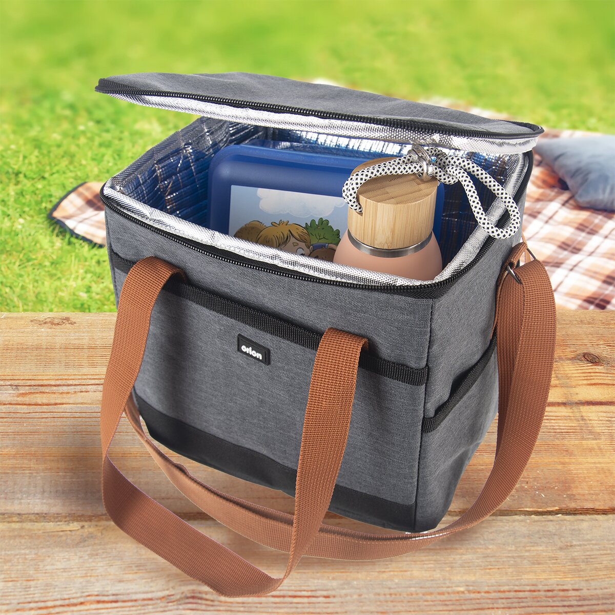 Kód produktu 731425Šedá termobrašna o objemu 8 litrů, se dvěma kapsami, uchy, popruhem a zavíráním na zip, udrží vaše jídlo a nápoje déle v požadované teplotě díky vnitřní termoizolační vložce.
