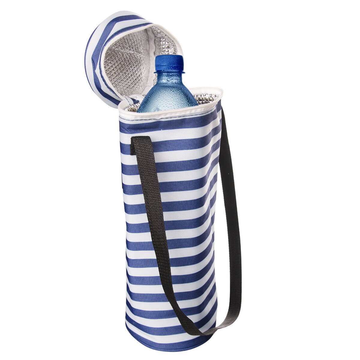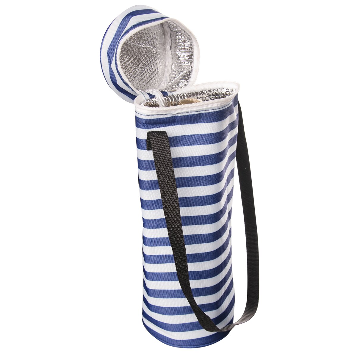 Kód produktu 731407Tmavě modrá pruhovaná termobrašna na láhev či kulaté dózy o průměru do 12 cm.
