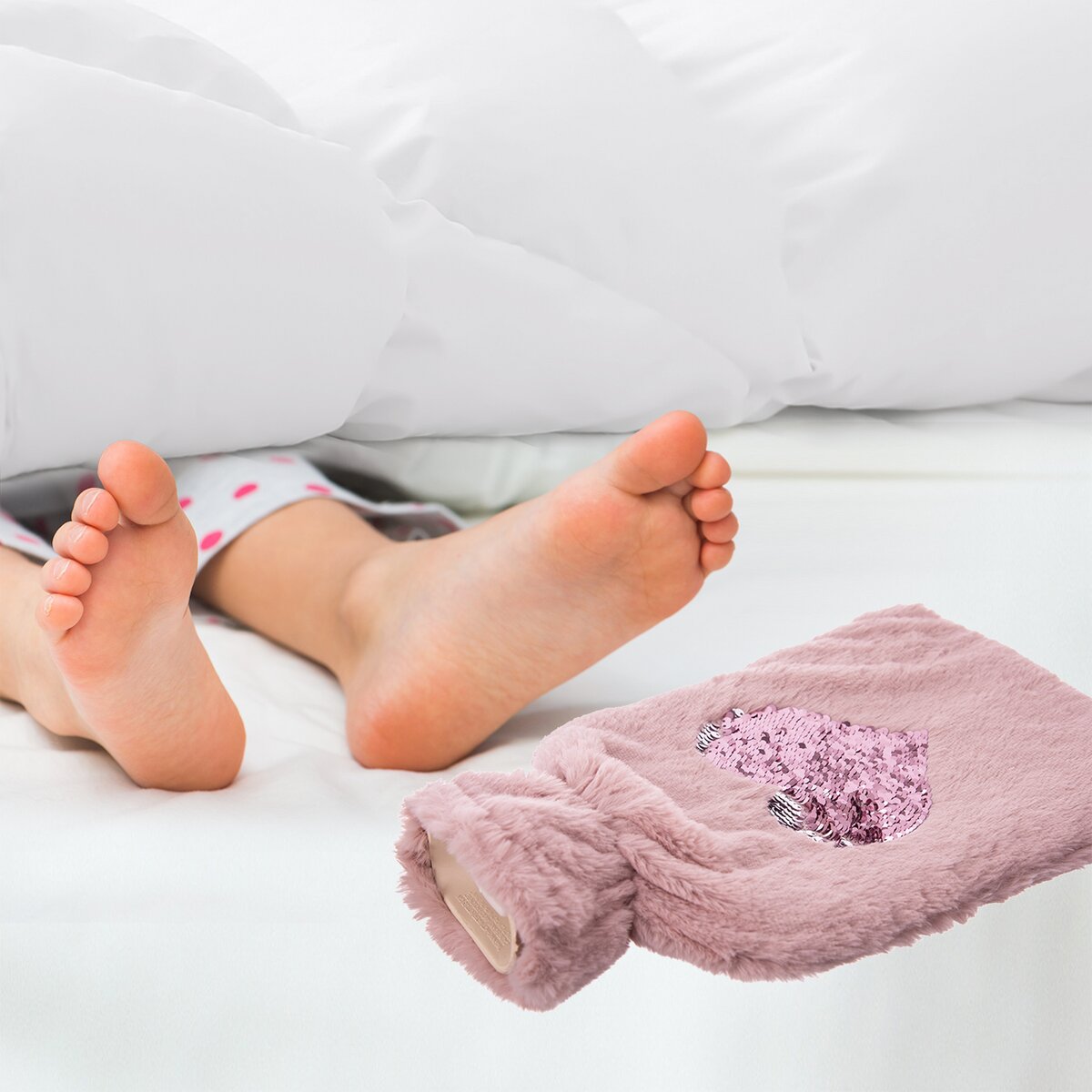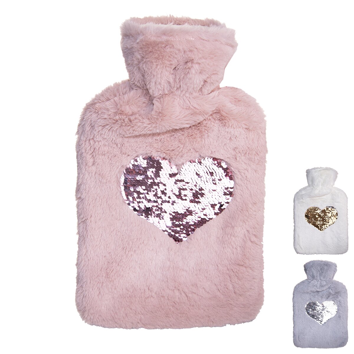 Tento termofor tvoří klasická gumová láhev se šroubovacím uzávěrem vložená do plyšového obalu, na kterém je vyobrazené třpytivé srdce. Nádobu stačí vyndat a naplnit teplou vodou, která bude mít maximálně 40 °C. Samotný vak lze prát v pračce na 30 °C.