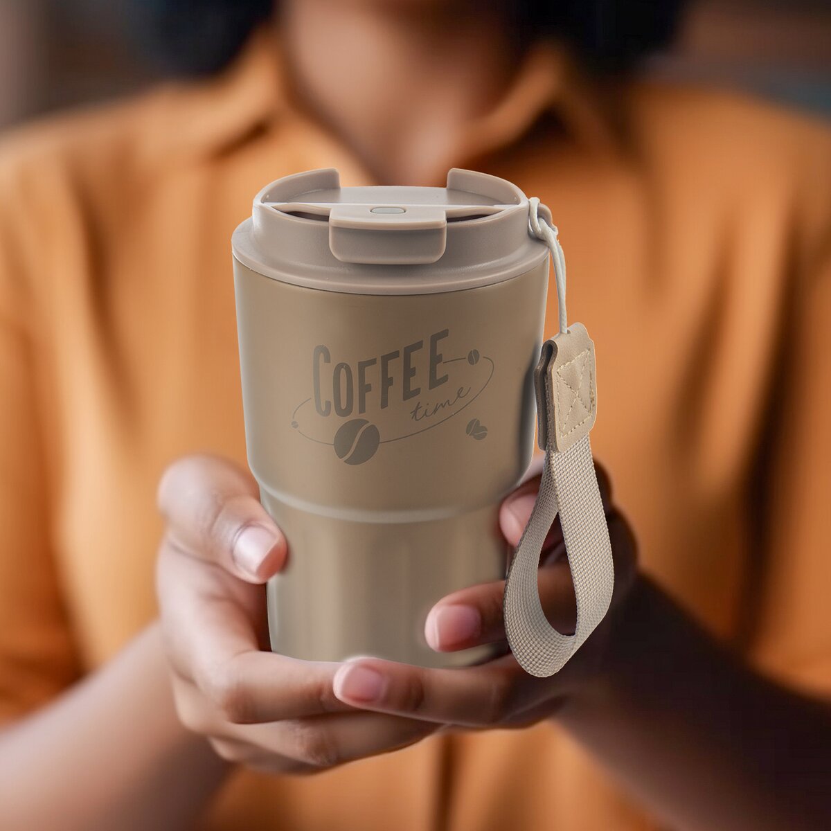 Nápis Coffee time působí stylově. Aby se vám obsah nádoby nikde nevylil, je hrnek opatřený víčkem z plastu PP na závit a uzavíratelným krytem pro otvor na pití. Po použití jej stačí umýt v teplé vodě se saponátem, opláchnout a osušit.