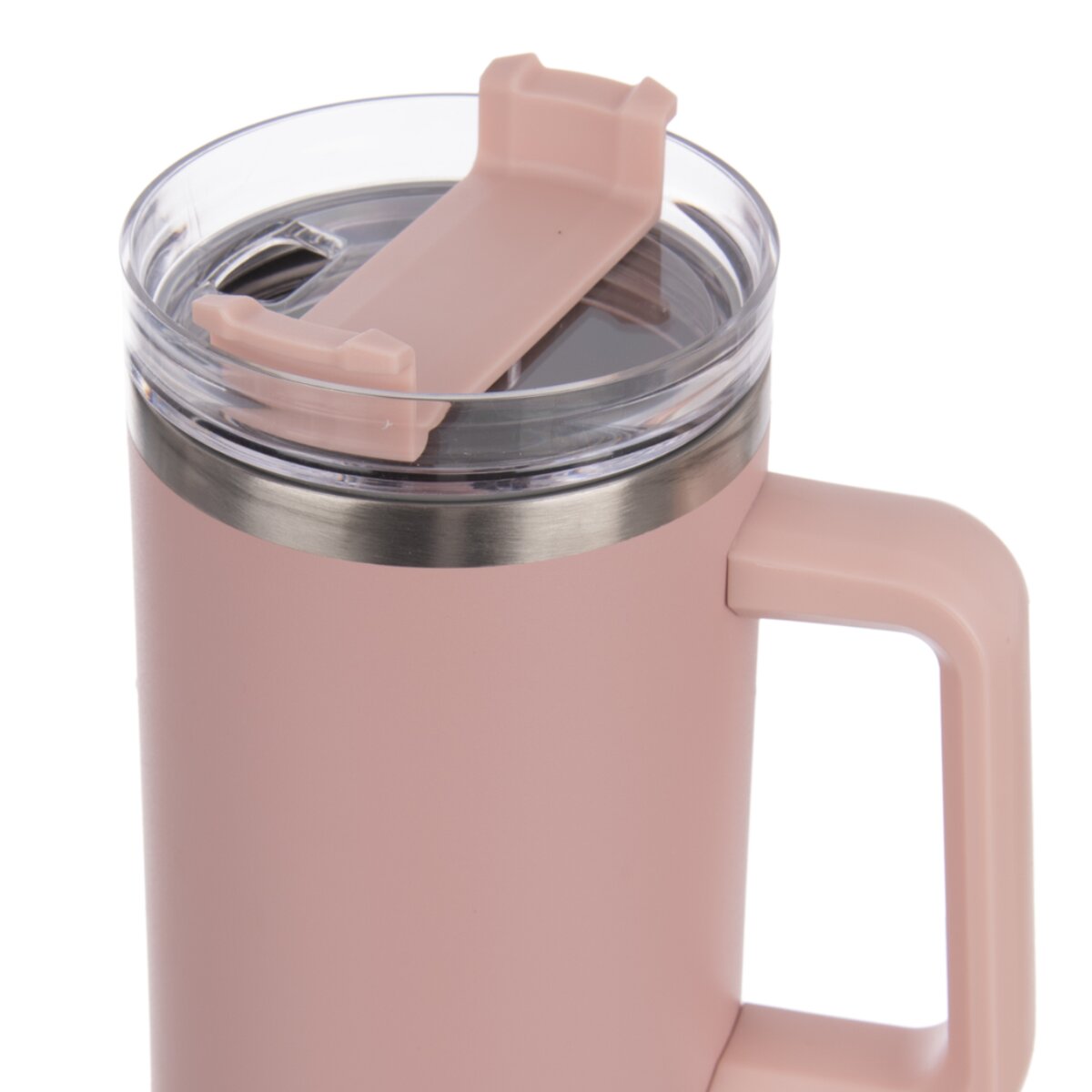 Má transparentní plastové víčko na závit, volně vložené brčko a uzavíratelný otvor pro pití (pootočením barevné části víčka po vyjmutí brčka). Praktické držadlo je uzpůsobeno pro pohodlné držení a přenášení. Nejlépe plní funkci naplněný na 90%. Před naplněním nalijte na cca 5 minut horkou vodu pro teplé nápoje, aby se hrnek ohřál, v opačném případě studenou vodu pro nachlazení nádoby, pak ji vylijte a můžete nalévat oblíbený nápoj.