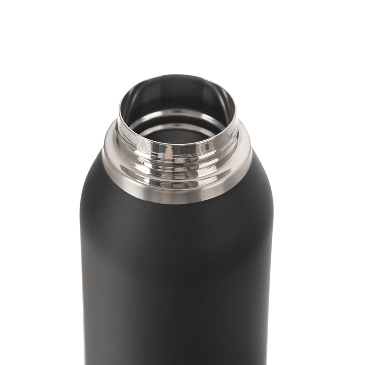 Kód produktu 830636Černá nerezová termoláhev v moderním designu, o objemu 0,6 l, je vhodná do práce, do školy, na výlety i pro doplnění tekutin při sportu. Bezpečně ji uzavírá bambusovo-plastové víčko se silikonovým těsněním a nylonovým provázkem.