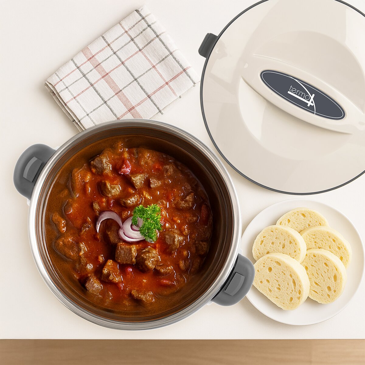 Polévka či hlavní chod zůstanou teplé, připravené k podávání doma, při návštěvě seniorů, na chalupě i v zaměstnání. Přitom je lehká a snadno se přenáší. Lze ji díky užitnému objemu použít i jako mísu s víkem pro uložení marinovaného masa na grilování, velké porce hovězího guláše, bramborového salátu nebo na větší množství nakrájeného melounu pro velkou partu dětí.