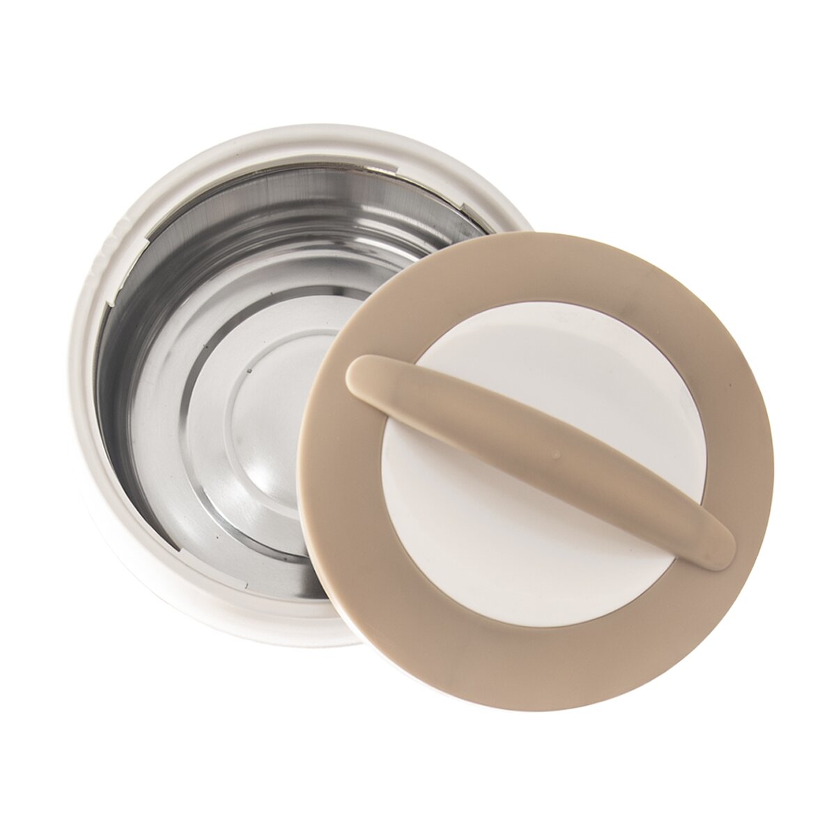 Můžete si tak vzít svůj oběd s sebou do práce, na výlety, do auta nebo na dovolenou nebo dopravit hotové jídlo svým blízkým. Skládá se z plastového obalu a nerezového vnitřku, užitný objem je 2,2 l. Snadné uzavření misky umožňuje otočné plastové termo víčko.