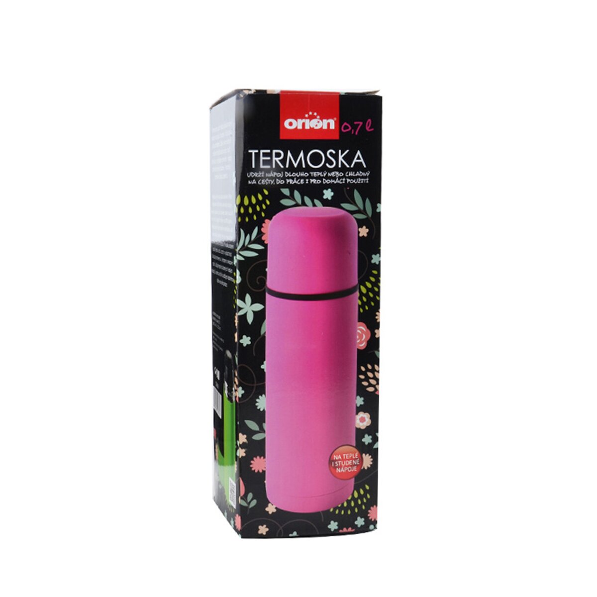 Kód produktu 125838Termoska udrží nápoj dlouho teplý nebo naopak chladný. Víčko slouží jako pohárek. Zátku nemusíte při nalévání odšroubovávat, stačí stisknout a můžete nalévat - nápoj zbytečně nechladne. Materiál: nerez, plast. Varianty barev: růžová, zelená. Rozměry: objem 0,7 l, pr. 8,5 cm, v. 25,5 cm.