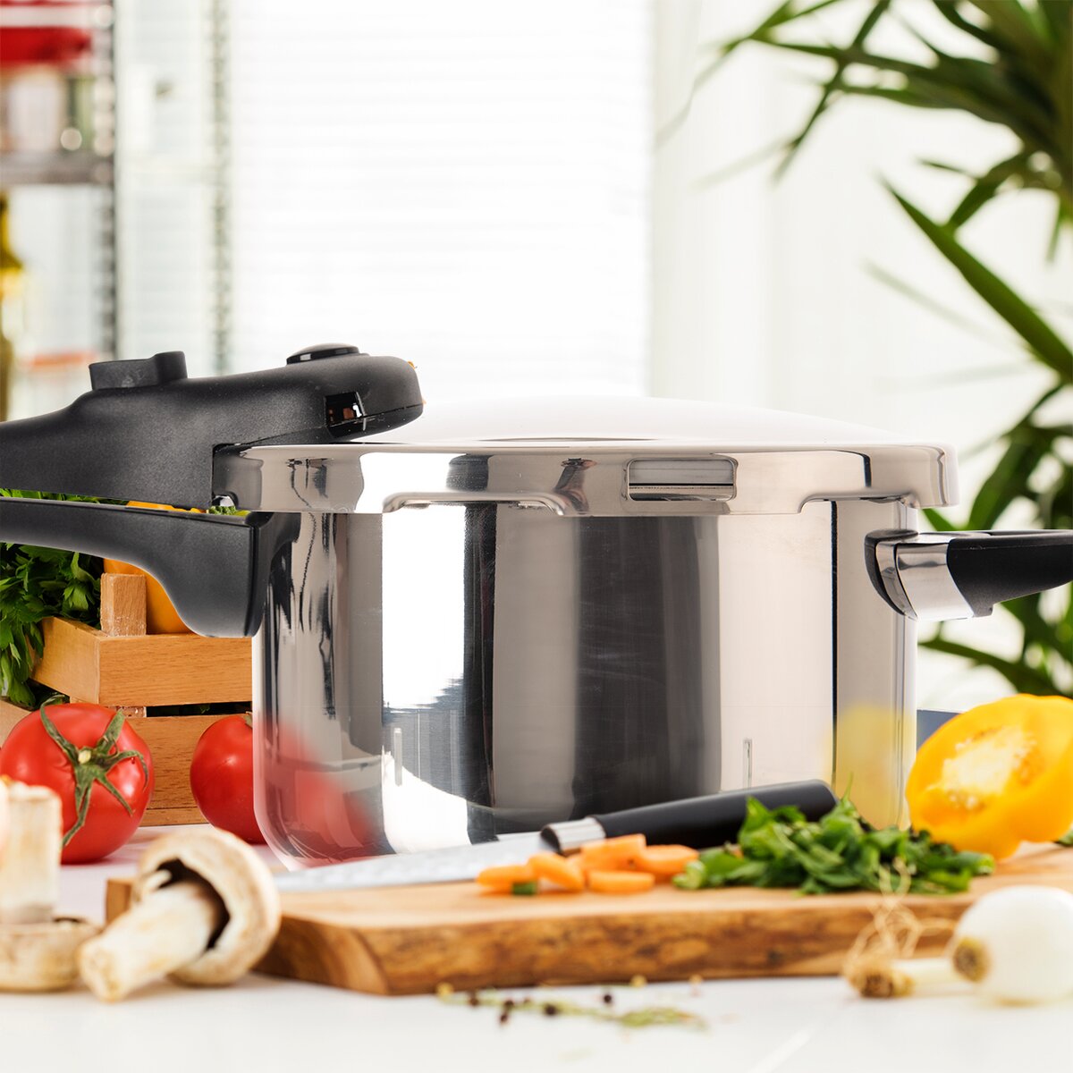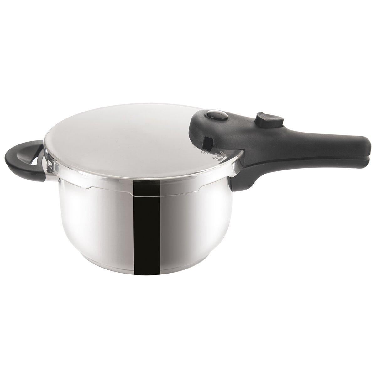 Silnostěnný hrnec o objemu 4 litry se sendvičovým dnem se uzavírá bezpečnou tlakovou poklicí, díky níž lze rychleji uvařit hovězí maso na guláš, králíka na smetaně, segedínek nebo kuře na paprice. A kdo nemá čas několik hodin táhnout masový vývar, ocení rychlou a jednoduchou přípravu.
