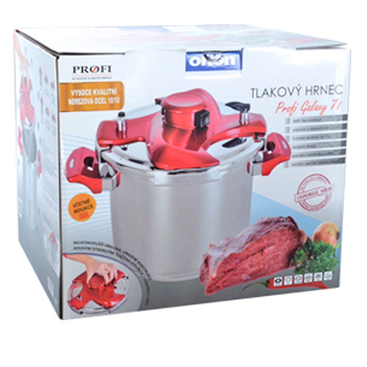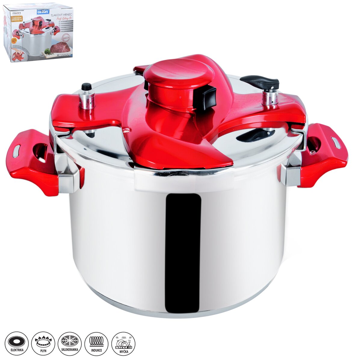 Kód produktu 111791Moderní konstrukce tlakového hrnce v unikátním designu. Tlakový hrnec z vysoce kvalitní nerezové oceli je opatřen 3-vrstvým akutermickým dnem, které díky svým vynikajícím termo - akumulačním vlastnostem spoří výrazně tepelnou energii i čas strávený při přípravě pokrmů. Ideální nádobí pro přípravu silných masových nebo zeleninových vývarů, oblíbených gulášů, ragú, veškerého masa vyžadujícího delší úpravu, luštěnin… Tlakový hrnec je opatřen víkem se speciální konstrukcí otevírání a zavírání, bezpečnostním a pracovním ventilem pro upouštění tlaku. Materiál: vysoce kvalitní nerezová ocel. Vhodný na všechny typy spotřebičů včetně indukce, vhodný do myčky. Rozměry: objem 7 l, pr. 23 cm, v. 17,5/23,5 cm. Náhradní těsnění v naší nabídce 180519.