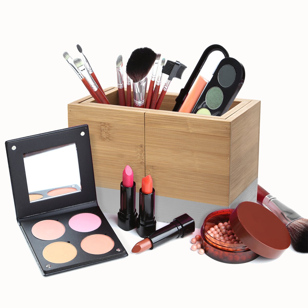 Kód produktu 122984Designový hranatý bambusový stojan je určen k uložení kuchyňského náčiní, příborů, ale i kancelářských a kosmetických potřeb. Lze jej vysunout a z jednoho oddílu tak vzniknou tři sektory.