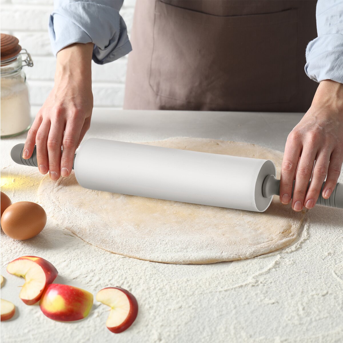 Kód produktu 141263Váleček s nepřilnavým silikonovým povrchem a pevnými šedými rukojeťmi je určen k válení těsta na cukroví, sušenky, štrúdl i slané dobroty, aniž byste museli těsto výrazně podsypávat moukou.