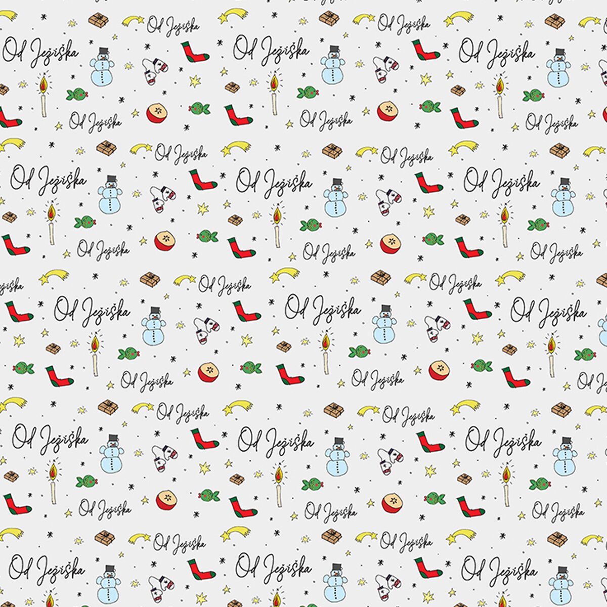 Aby dárek dobře vypadal, je třeba jej zabalit do pěkného papíru, ať už je velký nebo malý. Potěšte své blízké, kamarády nebo kolegy a dolaďte balení dárků k dokonalosti. Nápis Od Ježíška se objevuje na tomto originálním dekoru, který vznikl v kreativní dílně našich designérů.