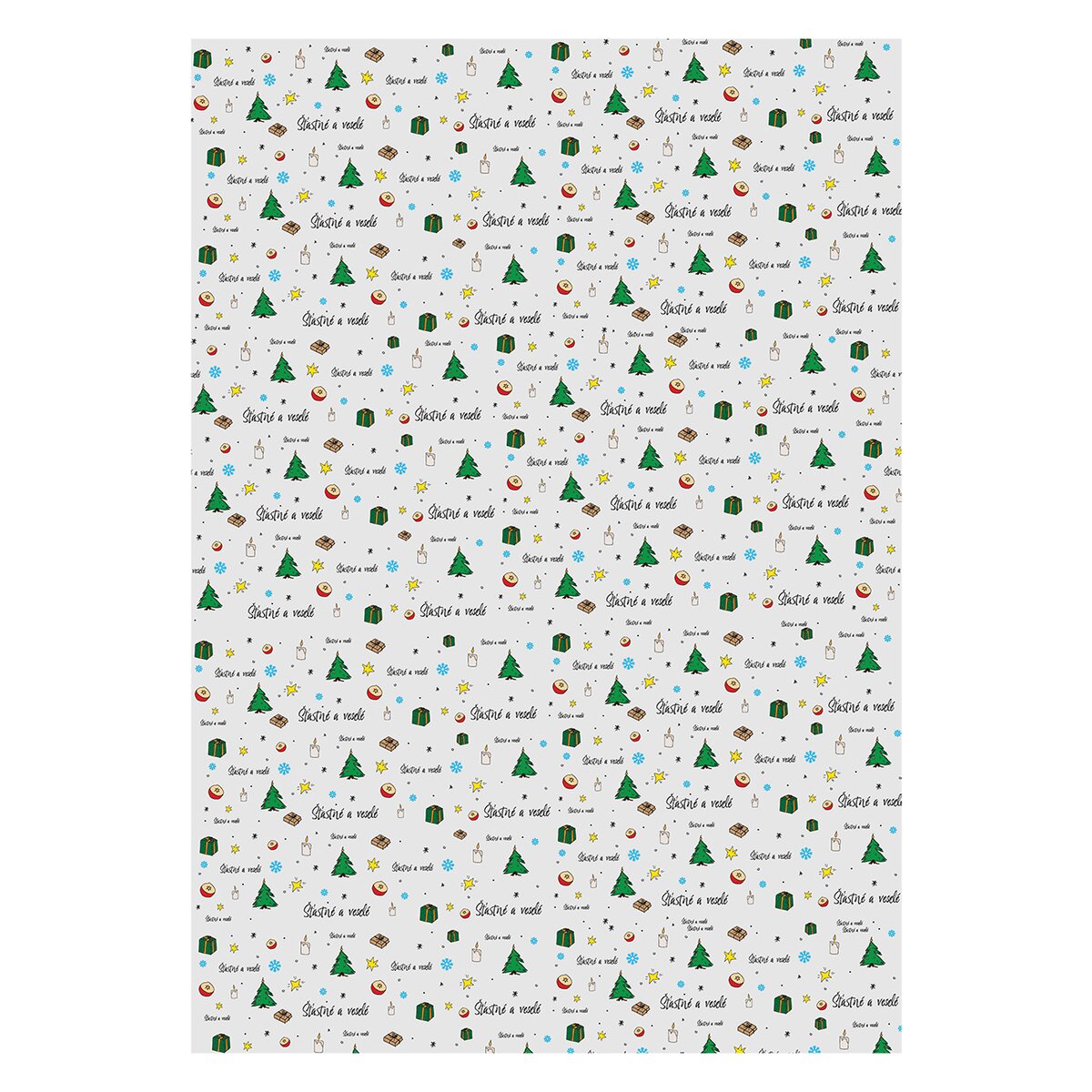 Kód produktu 842318Sada 2 archů balicích papírů ŠŤASTNÉ A VESELÉ o velikosti 100x70 cm je určena k balení vánočních dárků.