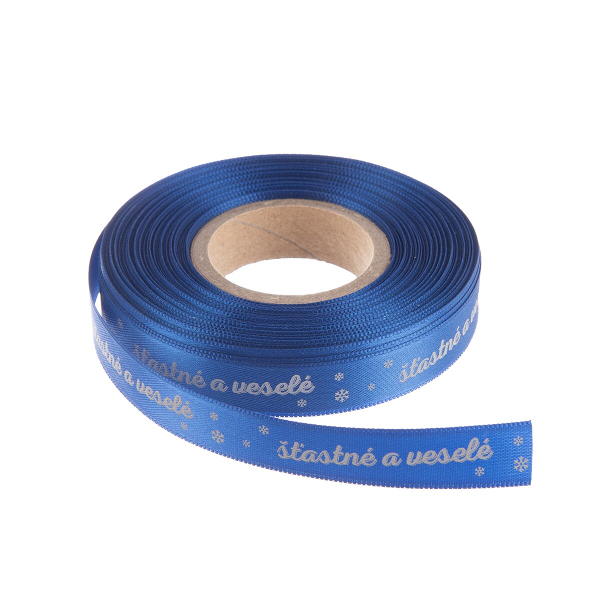 Kód produktu 823105Modrá stuha s potiskem "´ŠŤASTNÉ A VESELÉ" je určena k originálnímu balení vánočních dárků nebo k doplnění nejrůznějších vánočních dekorací. Má délku 25 m.