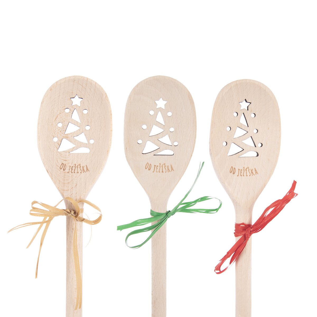 Tato buková vařečka je zdobena textem "OD JEŽÍŠKA", nad nímž je vypalovaný motiv vánočního stromku. Ten vznikl v dílně našich designérů.