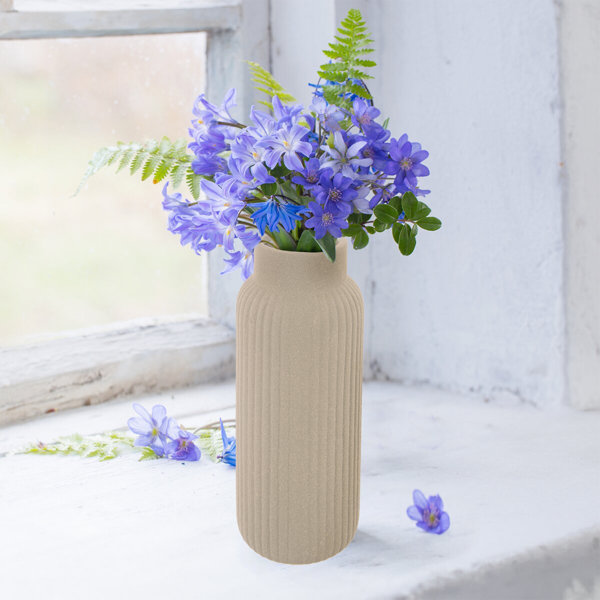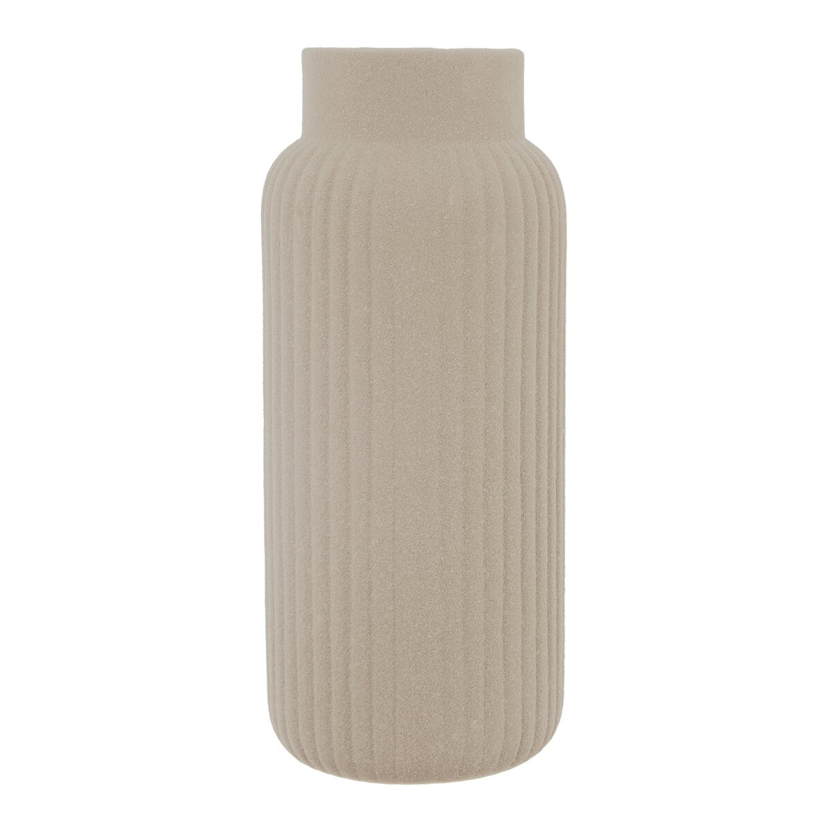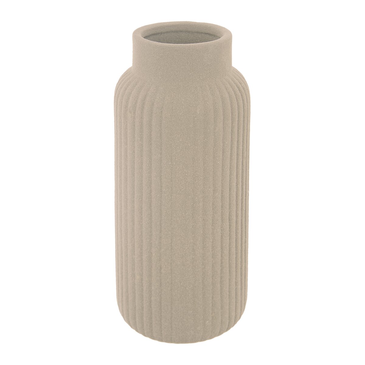 Kód produktu 820183Béžová porcelánová váza s hrubou strukturou a podélným žebrováním má výšku 24,5 cm a je vhodná na řezané i suché květiny nebo dekorativní traviny a větvičky.