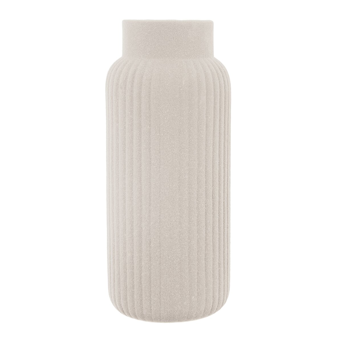 Kód produktu 820184Smetanová porcelánová váza s hrubou strukturou a podélným žebrováním má výšku 24,5 cm a je vhodná na řezané i suché květiny nebo dekorativní traviny a větvičky.