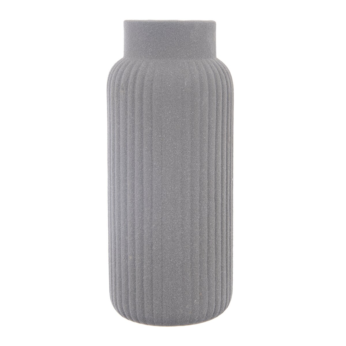 Kód produktu 820185Šedá porcelánová váza s hrubou strukturou a podélným žebrováním má výšku 24,5 cm a je vhodná na řezané i suché květiny nebo dekorativní traviny a větvičky.