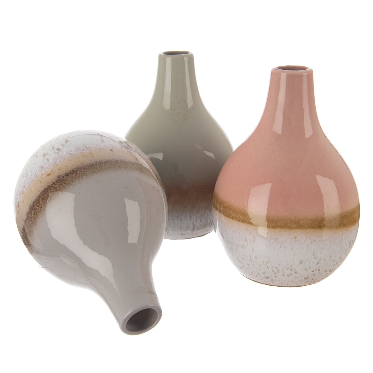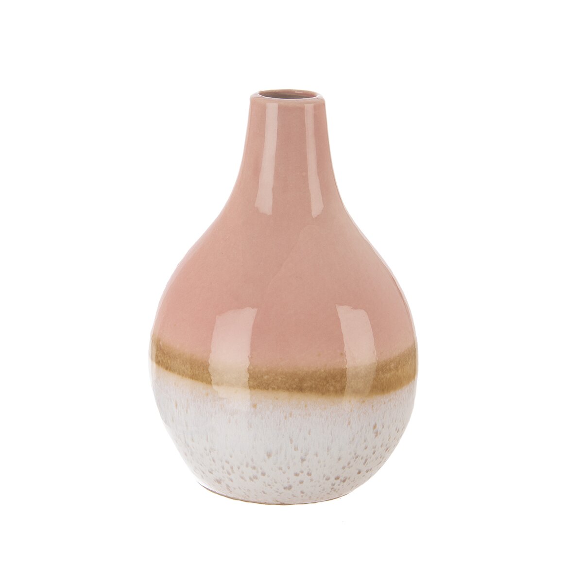 Oblá kameninová žíhaná váza s užším hrdlem bude ozdobou interiéru. Zvlášť v dnešní době se styl 70. let často objevuje v designu a kouscích, které oživí každou domácnost.
