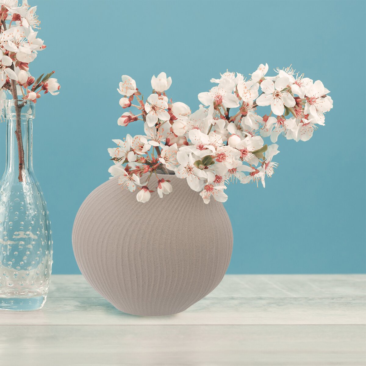 Kód produktu 820180Béžová porcelánová váza s hrubou strukturou a žebrováním má výšku 10 cm a je vhodná na řezané i suché květiny nebo dekorativní větvičky.