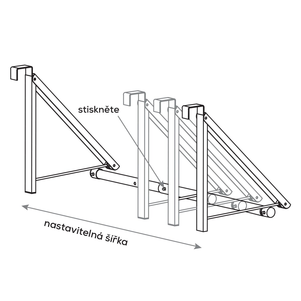 Lze jej jednoduše nastavit do tří poloh a zavěsit na hranu dveří nebo skříňky o tloušťce do 4 cm. Podle potřeby je možné ho sklopit. Nosnost 4 kg.
