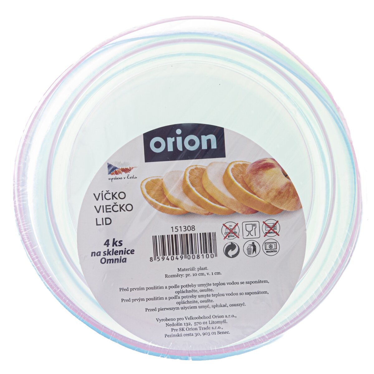 Kód produktu 151308Sada 4 kusů kulatých plastových víček o průměru 10 cm na zavařovací sklenice OMNIA.