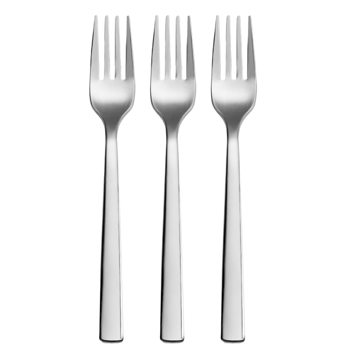 Lesklé nerezové vidličky v jednoduchém, minimalistickém designu, s hranatou spodní částí.