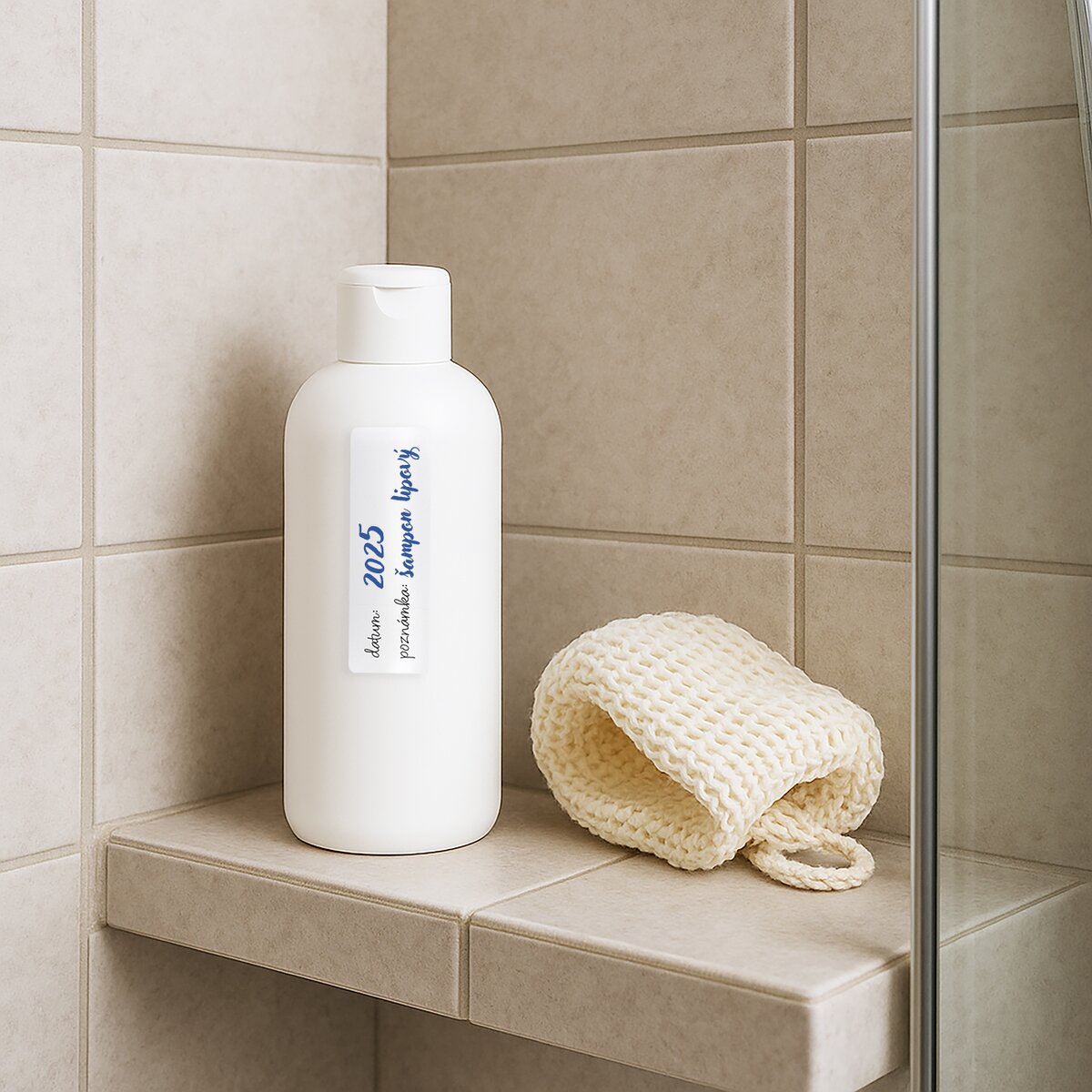 Tyto voděodolné samolepky se hodí i k polepení lahviček obsahujících mycí gely, šampony, tekutá mýdla, která jste si koupili v XXL balení a přeléváte si je do menší nádoby. Nebo se chystáte na dovolenou a potřebujete si vzít jen menší lahvičky s kosmetikou, které budou jasně označeny.