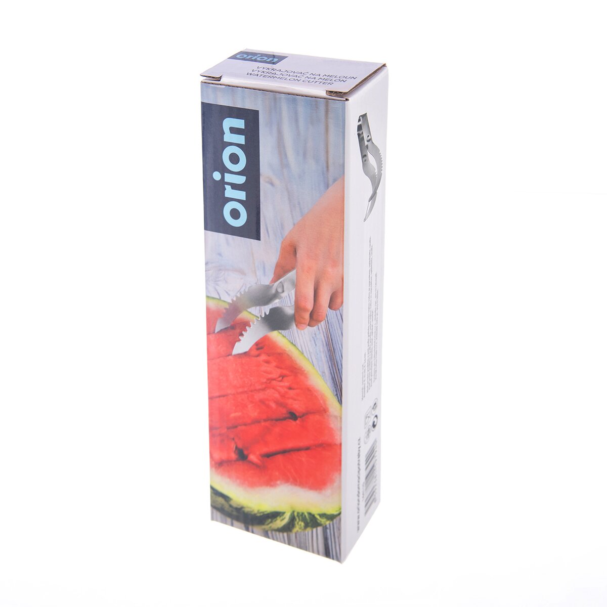 Kód produktu 144110Celonerezový vykrajovač dužiny ze šťavnatého vodního melounu umožňuje naporcovat dužinu na plátky, případně kostky a otočením zubatou částí poslouží i jako kleště k vyjímání jedotlivých dílků.